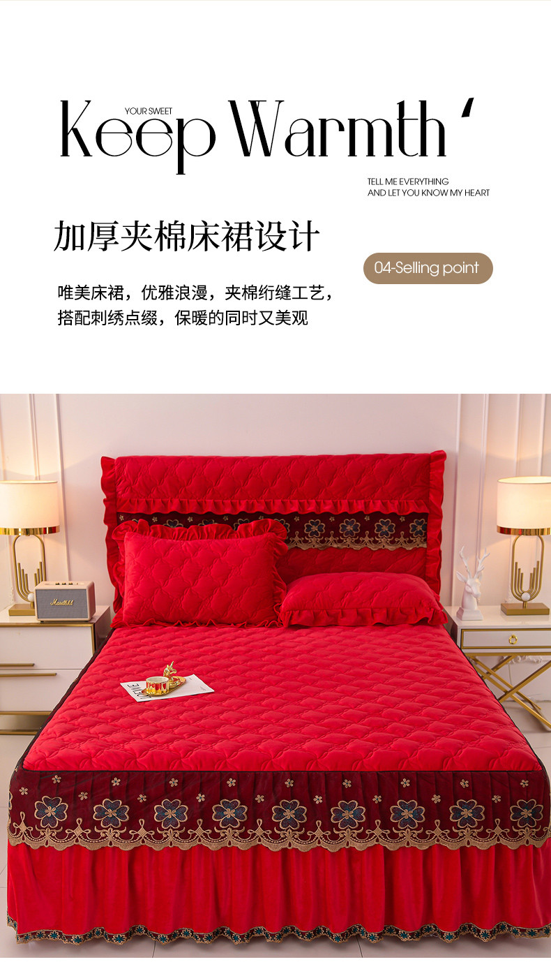 (总)源梦家纺 2024新款幸运草夹棉单床裙,纯白,大红,豆沙,粉色,灰色,兰色,米黄,玉色