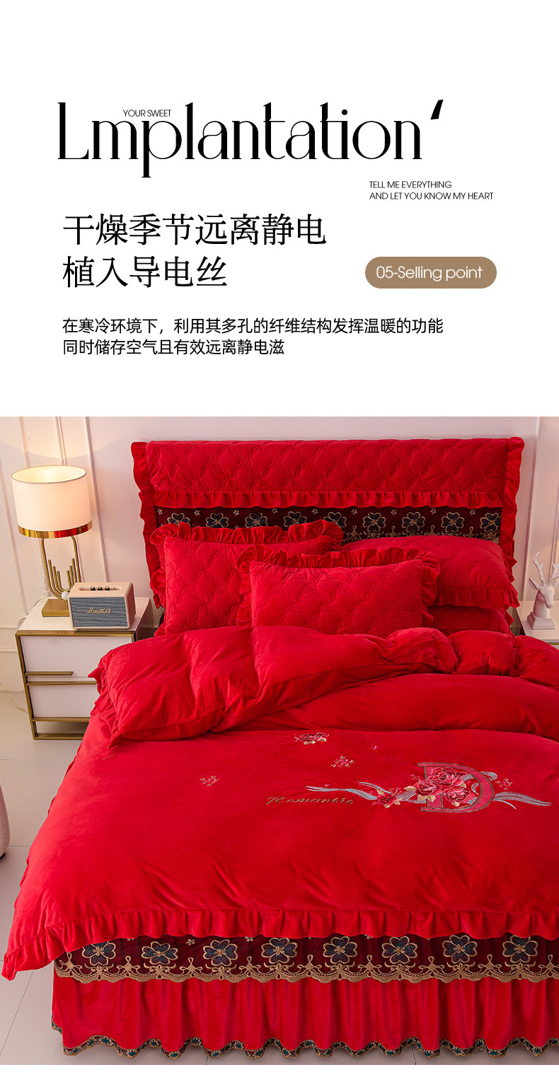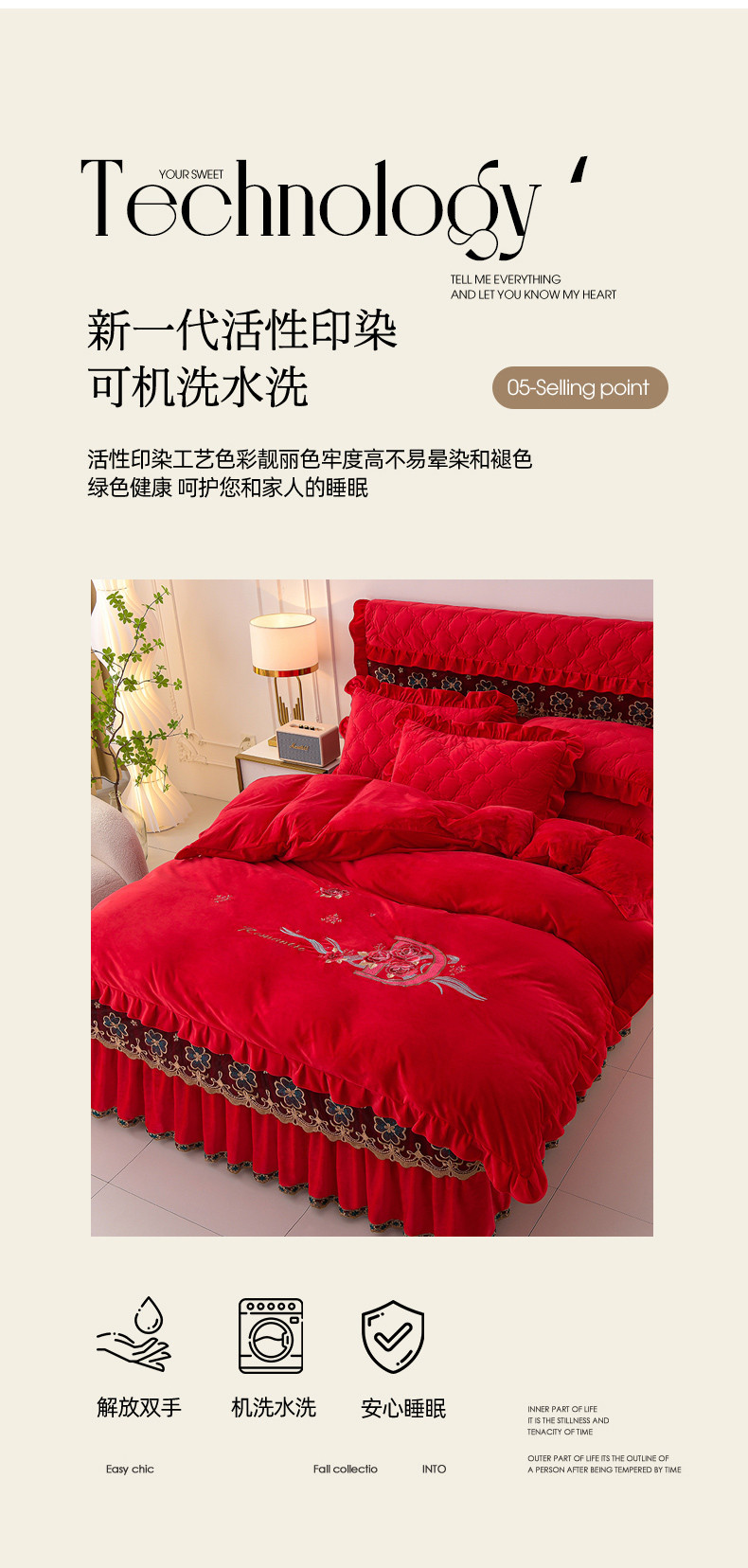 (总)怡源梦 2025新款牛奶绒床裙四件套-甜心公主系列,米白色,大红色,粉玉色,灰色,咖色,绿色,紫色