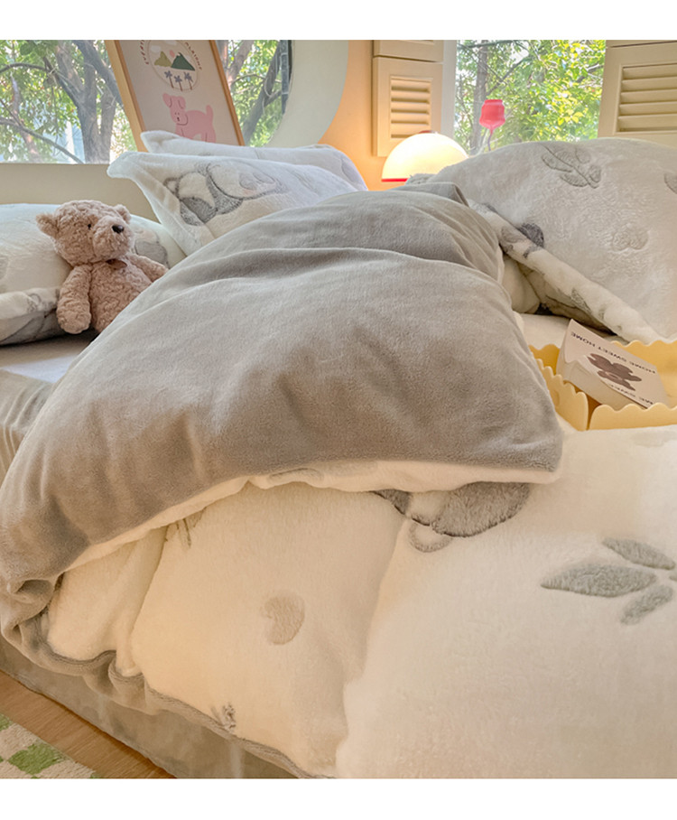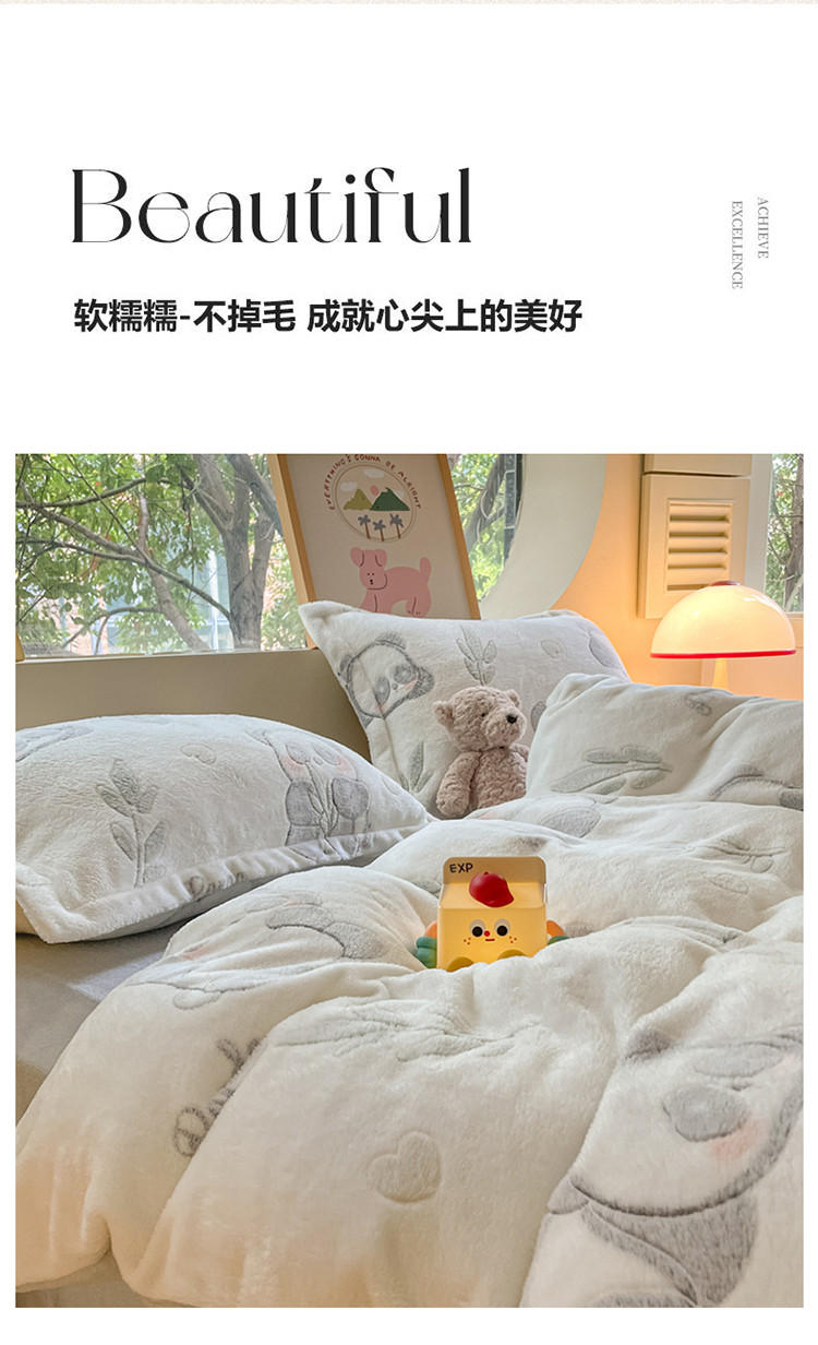 (总)慕尚家纺 2025新款豆豆绒刺绣四件套,大耳狗 白蓝,玫瑰 白粉