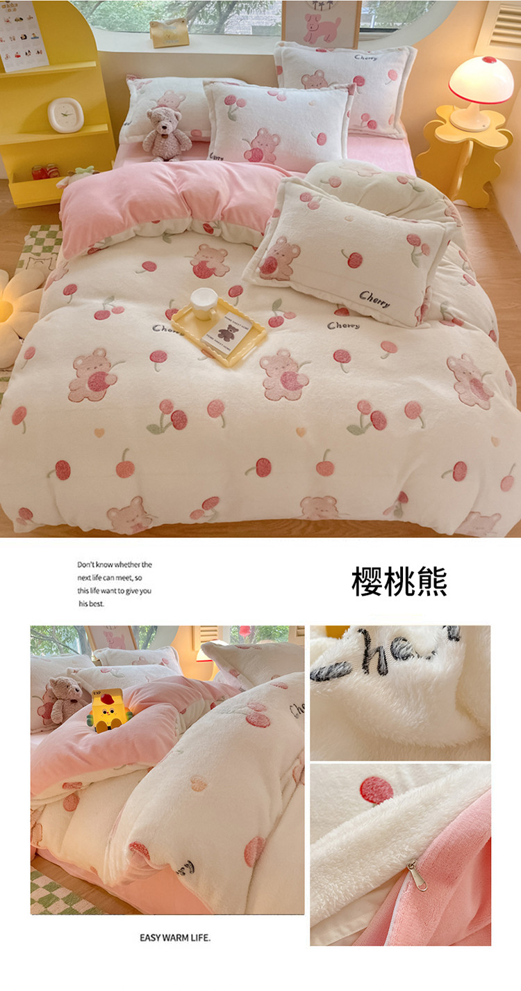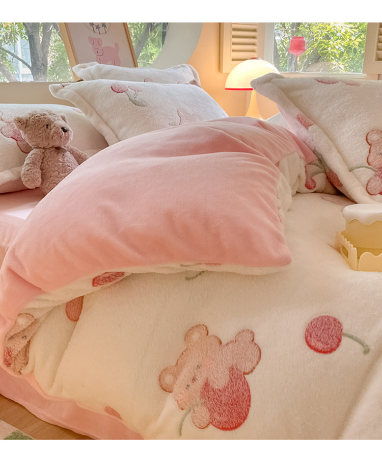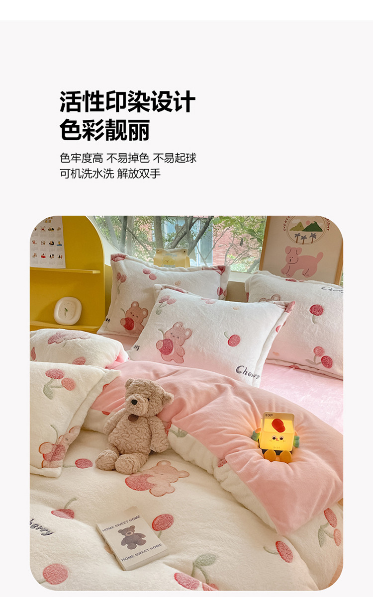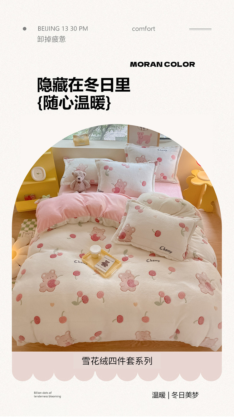 商品名称:慕尚 2025新款5D雪花绒单品系列-单被套 樱桃熊