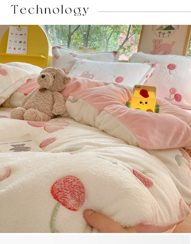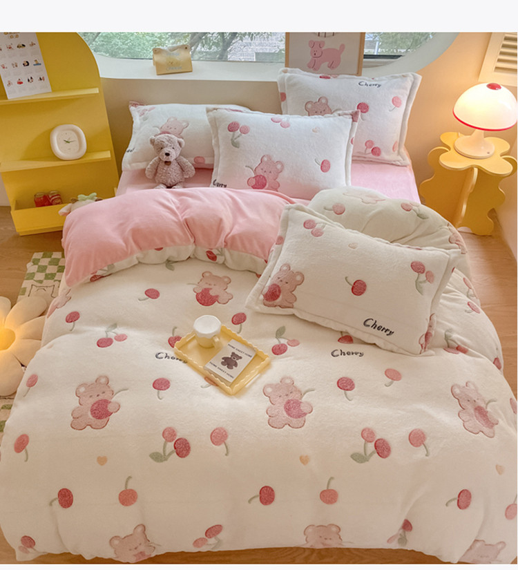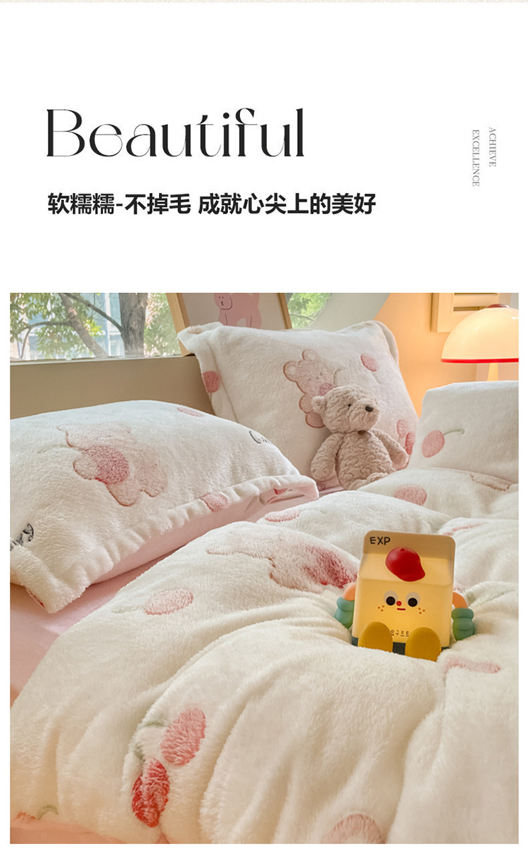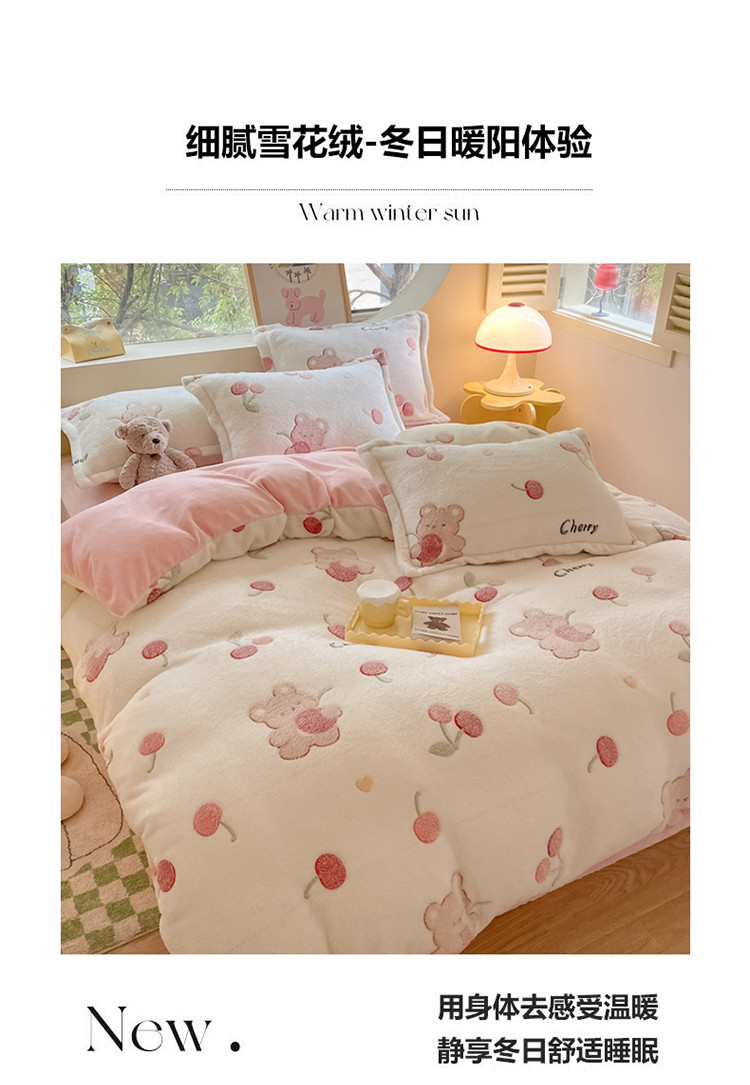 商品名称:慕尚 2025新款5D雪花绒单品系列-单被套 樱桃熊