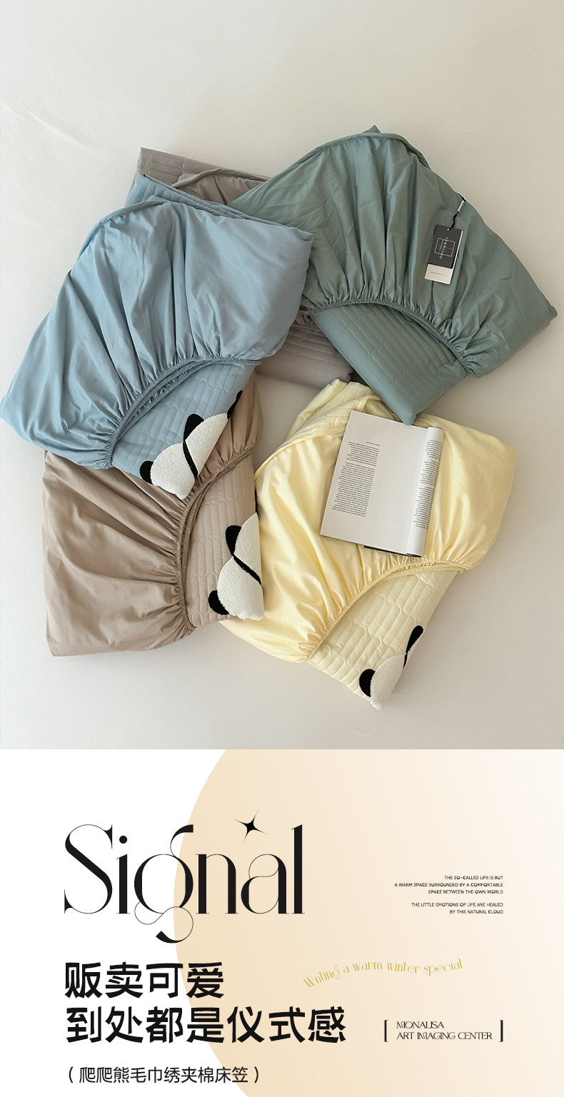 三味舒屋 2024新款加高全棉爬爬熊毛巾绣夹棉床笠 爬爬熊蓝