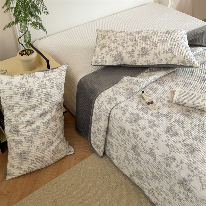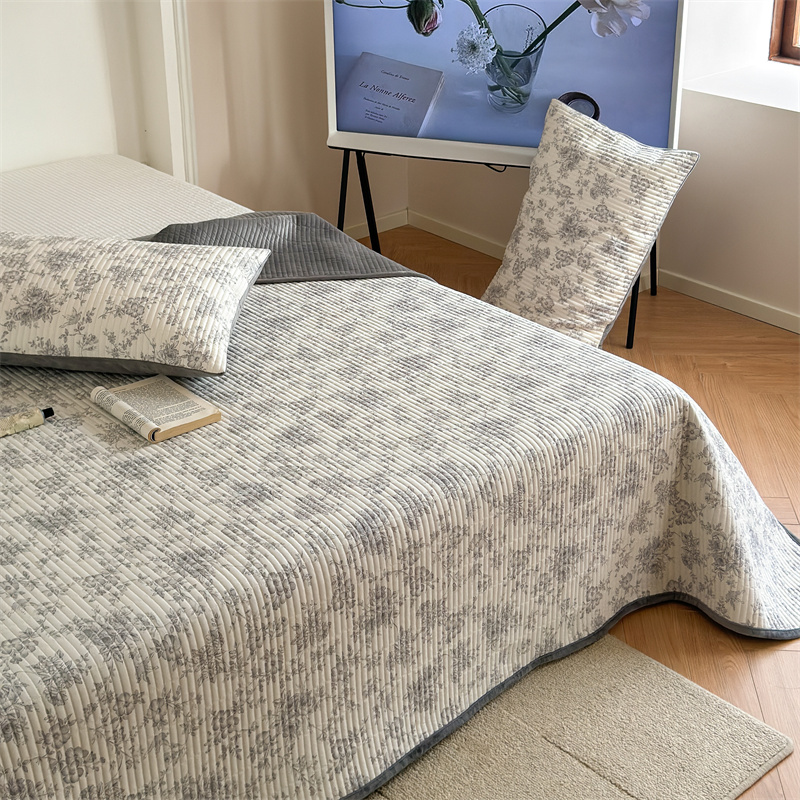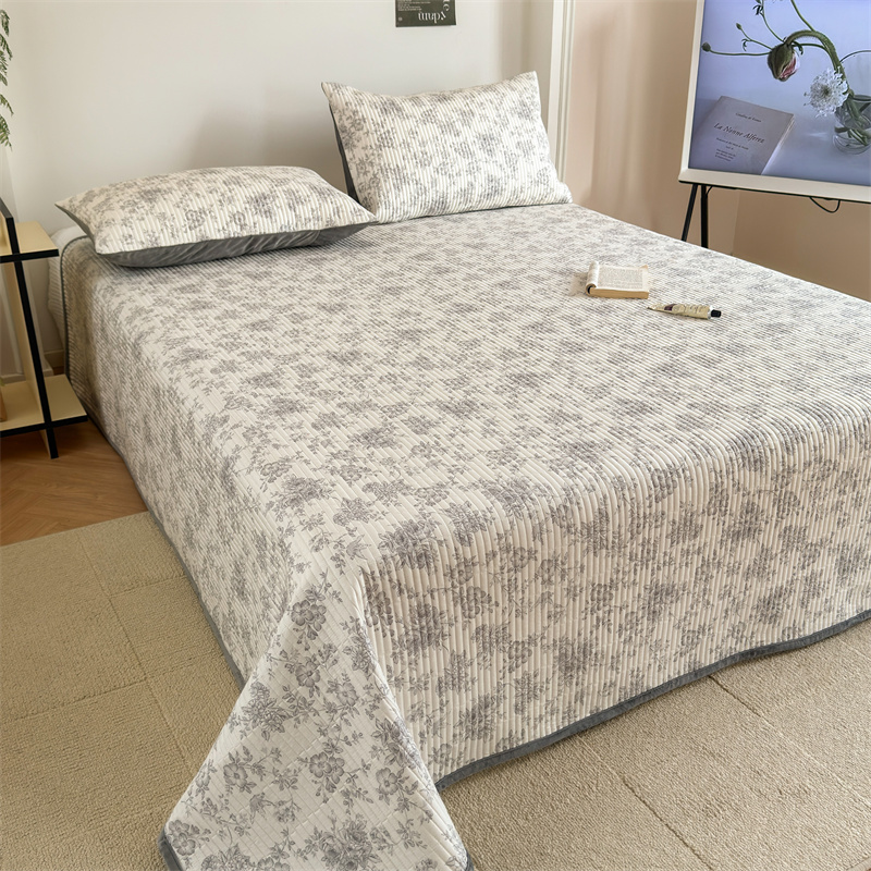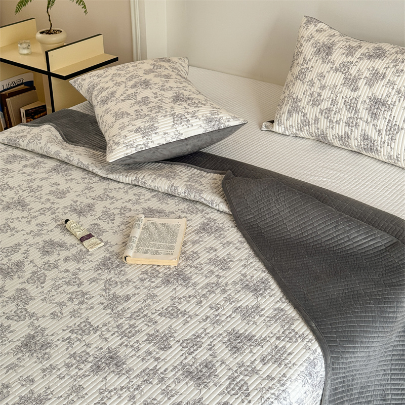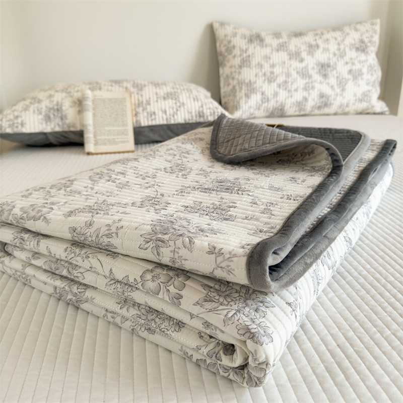 星期八 2023新款棉加绒床盖三件套 白山茶