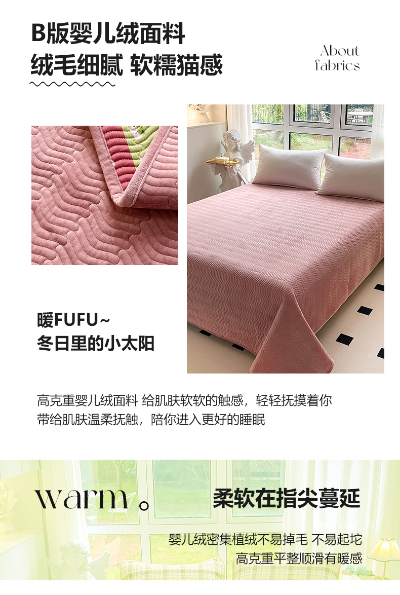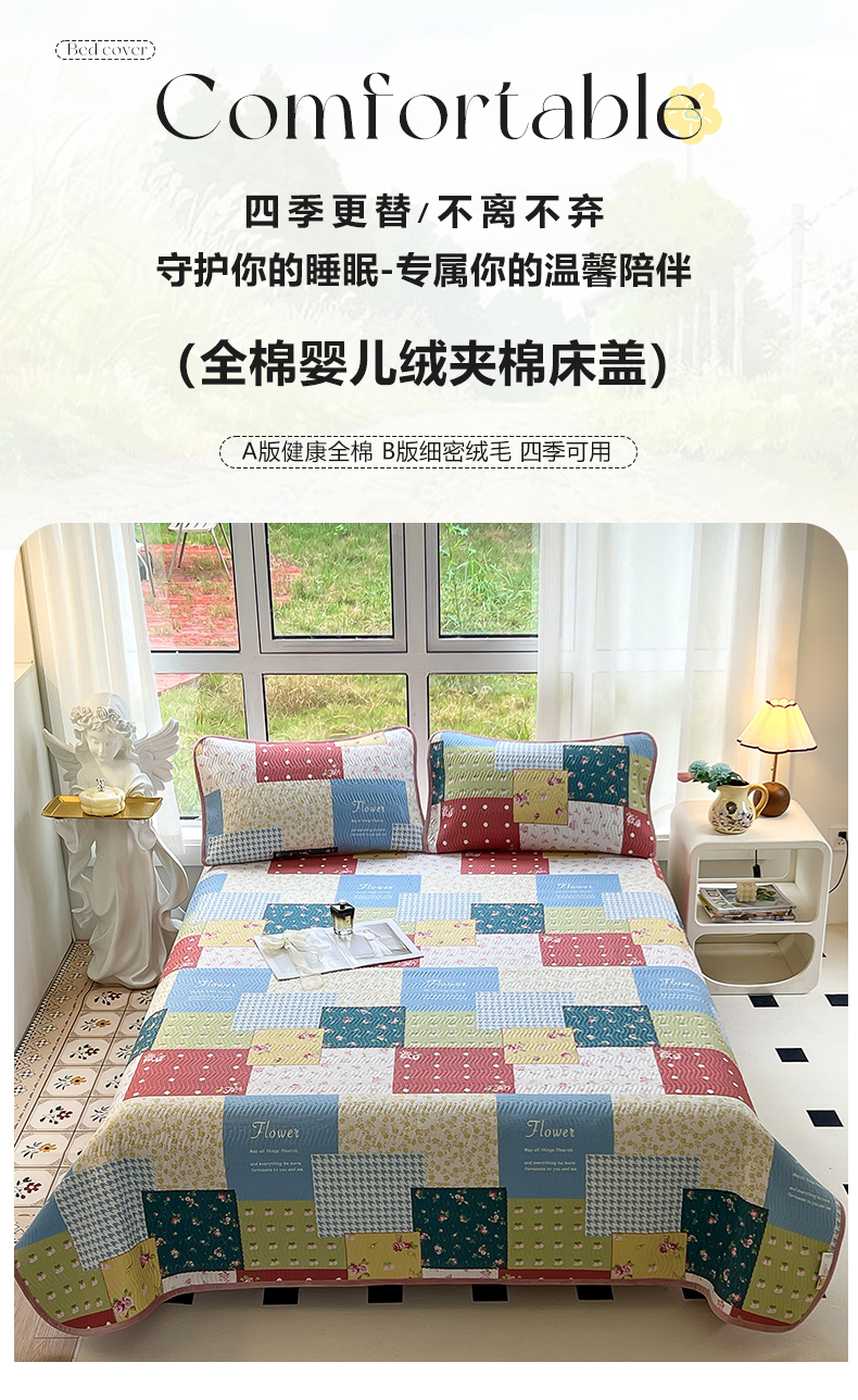 当前位置: 91家纺网 > 商品网购 > 床上用品 > 床盖 > 2024新款40支棉加绒单床盖三件套双面可用全棉加厚婴儿绒 春雨绵绵