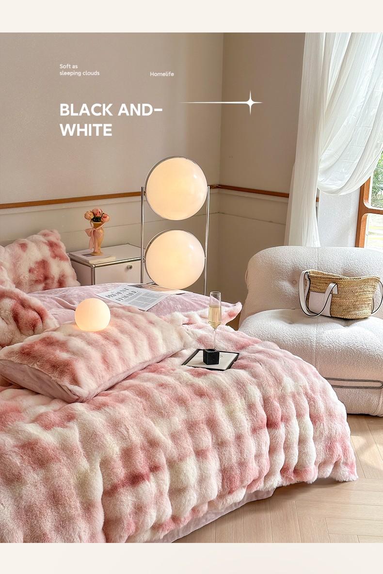 诺梵 2025新款纯色七彩兔毛绒四件套 七彩-粉