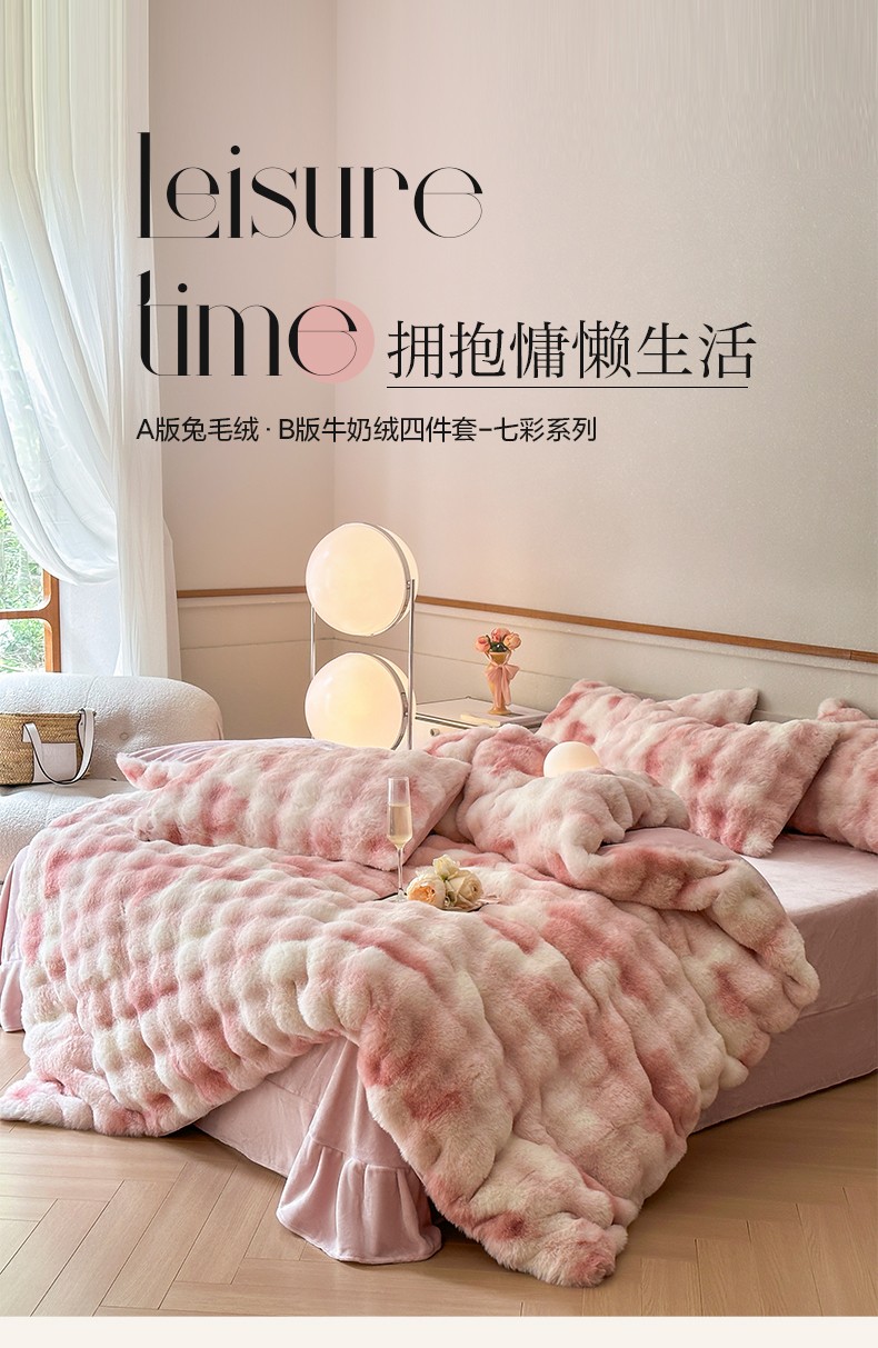 (汇总) 诺梵 2025新款纯色七彩兔兔绒兔毛绒四件套,豆沙粉,高级灰,七彩-粉,七彩-紫