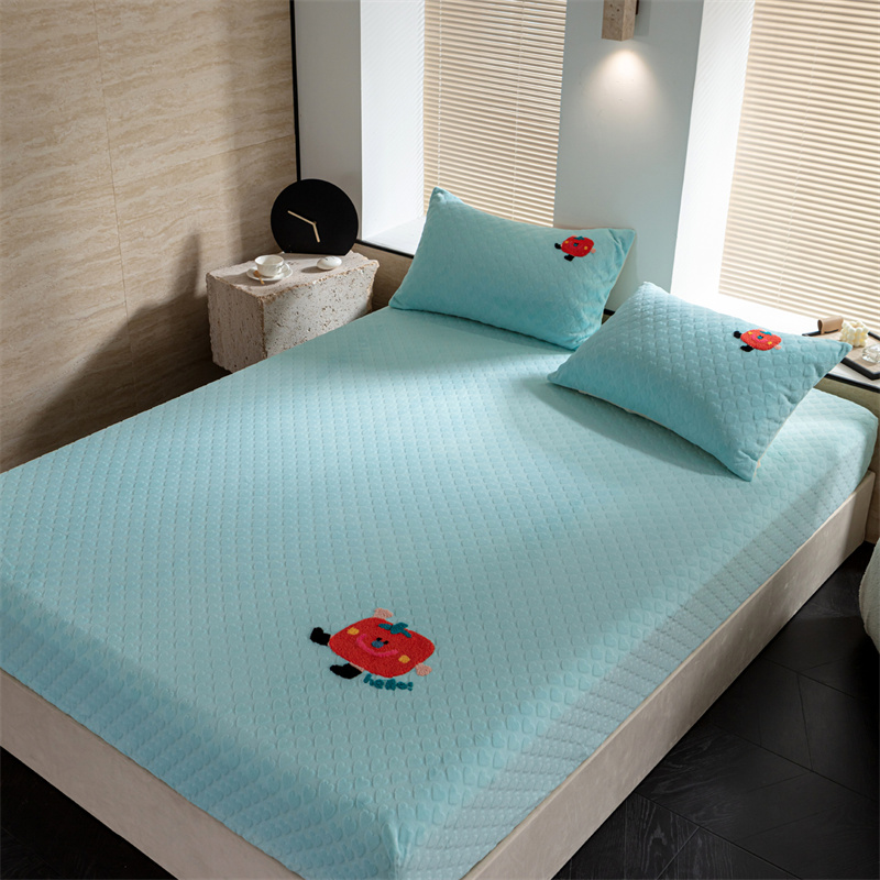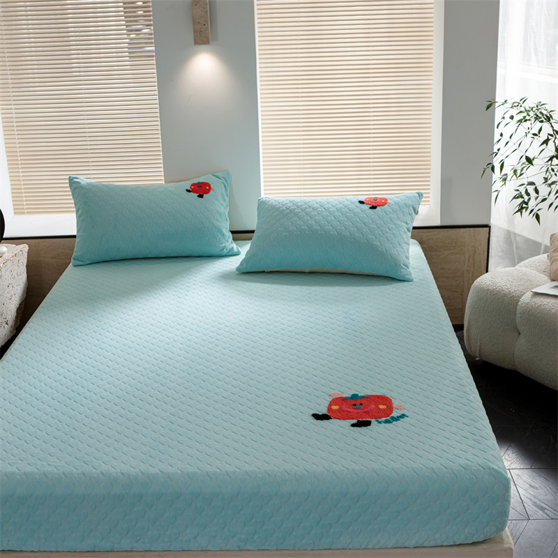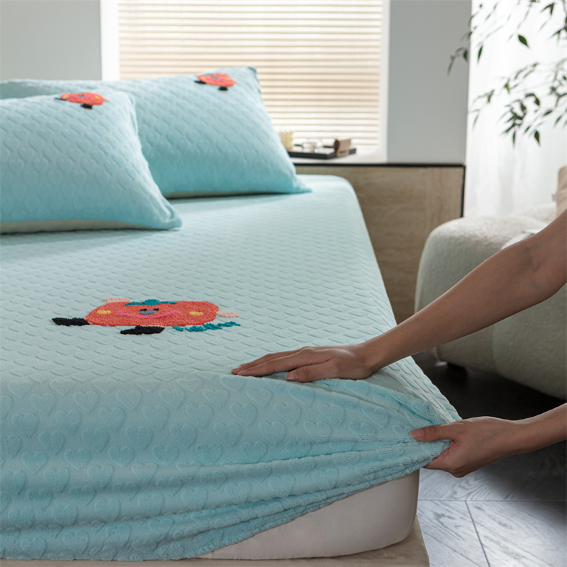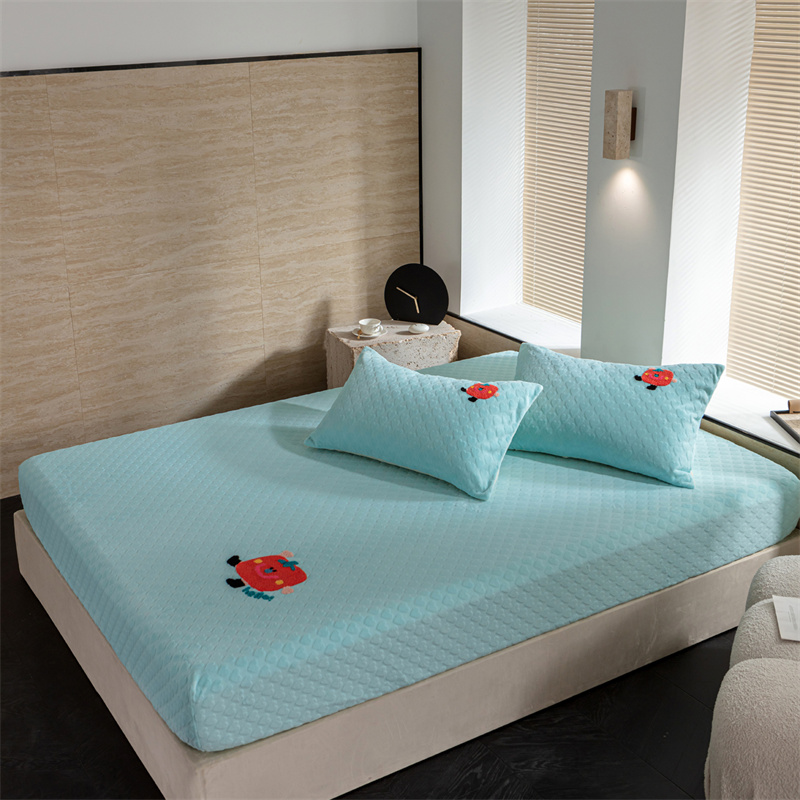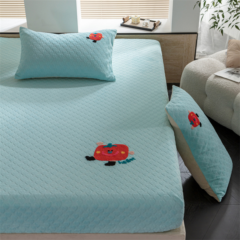 洋铭区(原狠狠爱)2023新款华夫格单品绒床笠甜心蓝