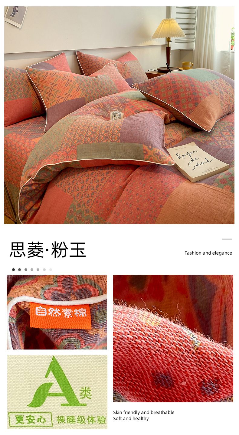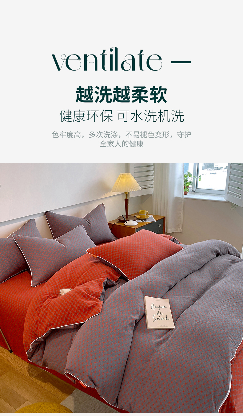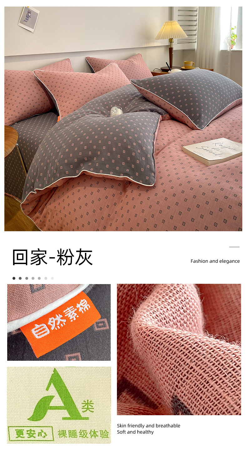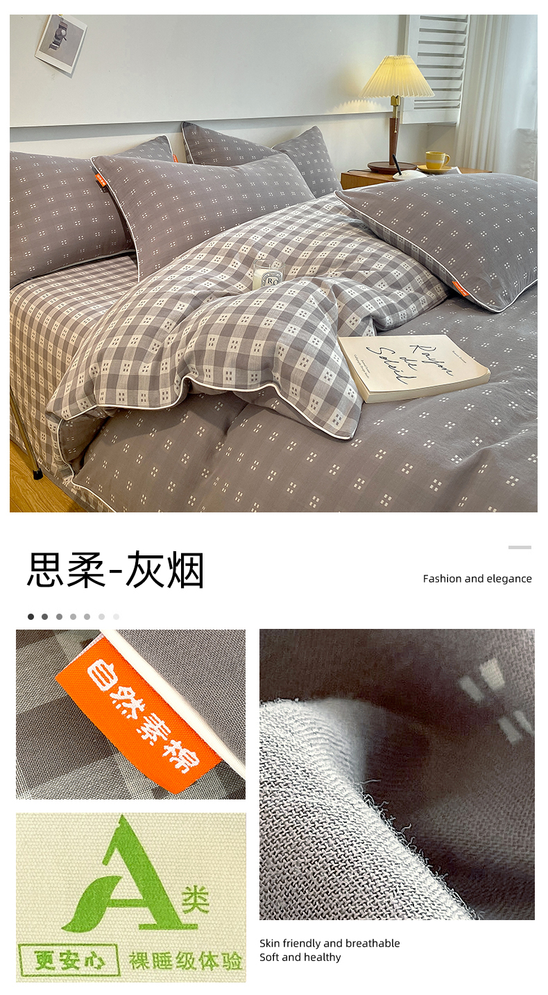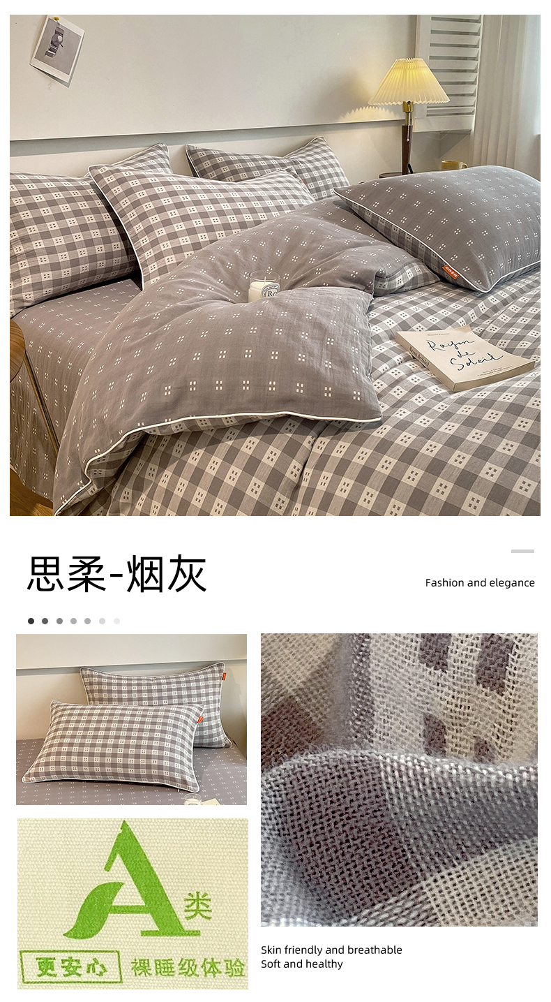 (总)春皖家纺 2026新款A类全棉三层纱AB版简约四件套-风格二,花笺,棱序,南坪,瑞拉-灰,瑞拉-咖,瑞拉-蓝,瑞拉-玉,森屿,云栀
