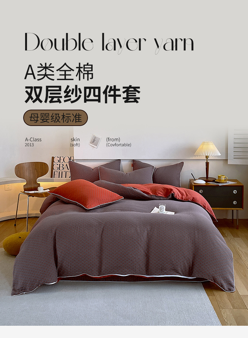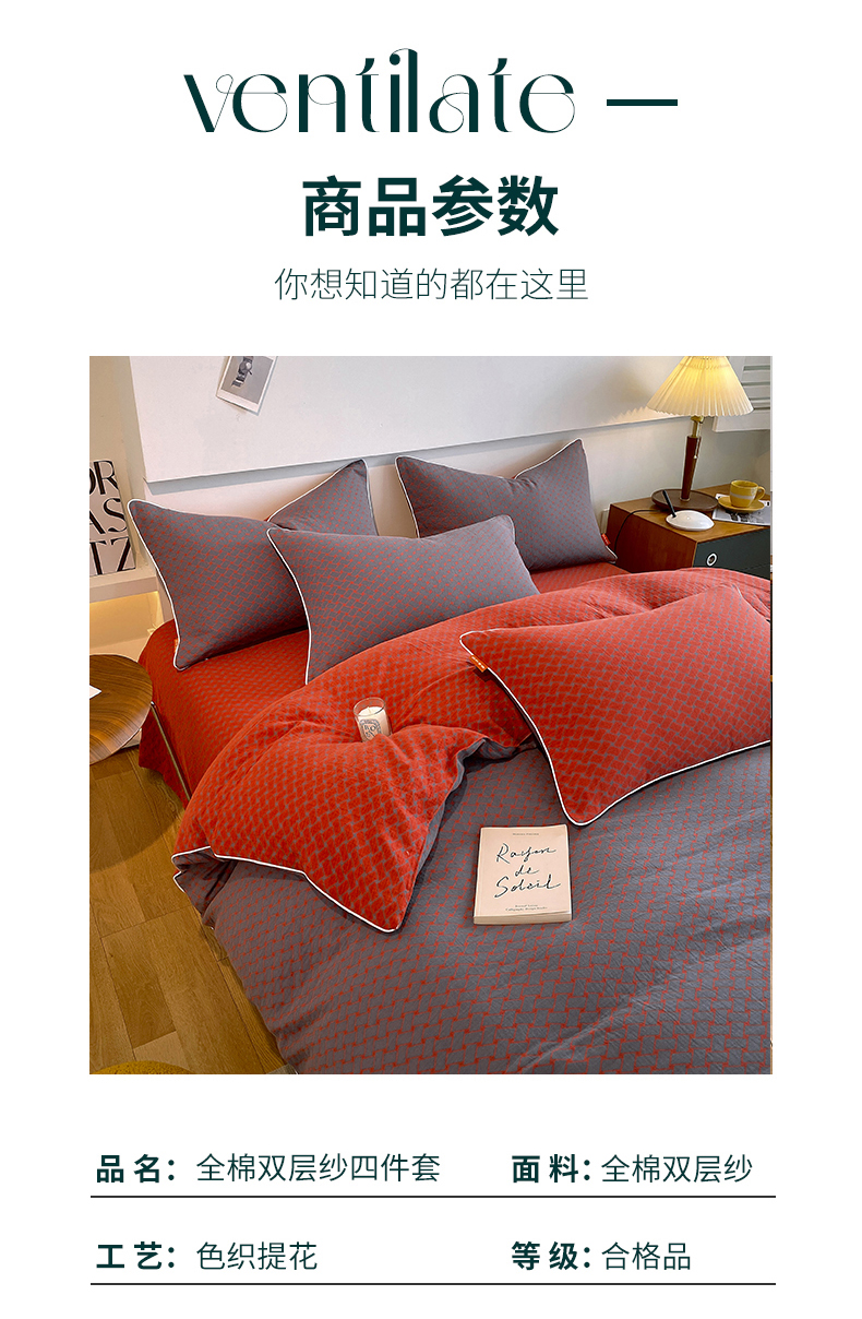 (总)春皖家纺 2026新款A类全棉双层纱AB版简约四件套,瑞拉-咖,花笺,棱序,南坪,瑞拉-灰,瑞拉-蓝,瑞拉-玉,森屿,云栀