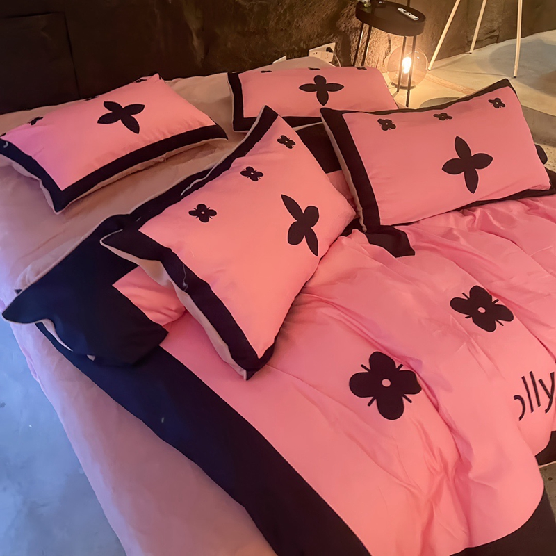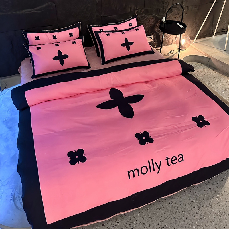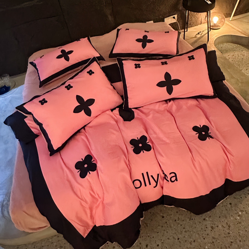 商品名称:色鬼 2023新款轻奢潮牌大牌风棉加绒四件套印花牛奶绒四件套 四叶草