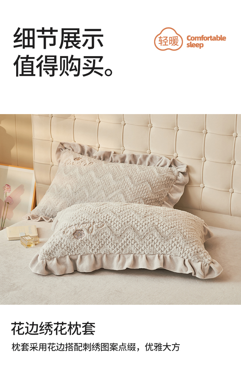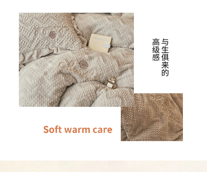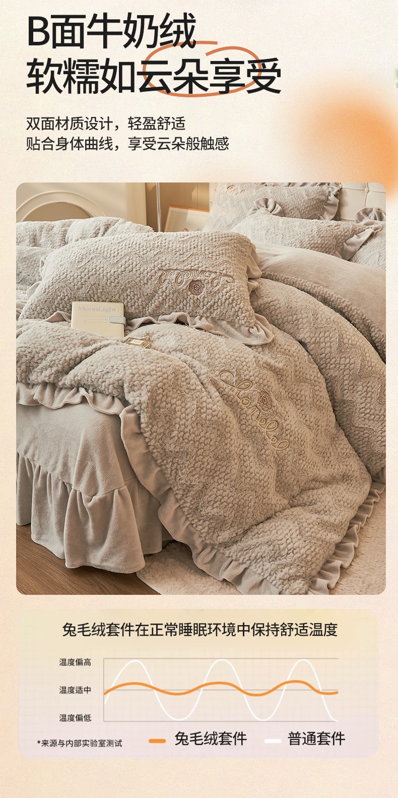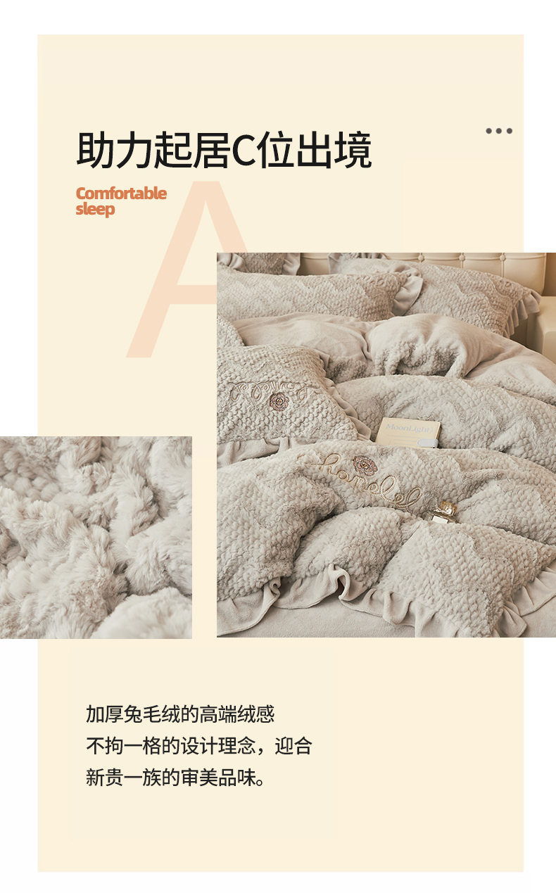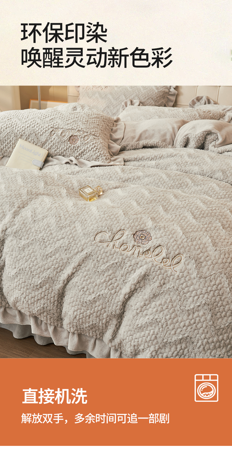 商品名称:恒爱家纺 2023新款兔毛绒绣花四件套 波浪款-浅灰