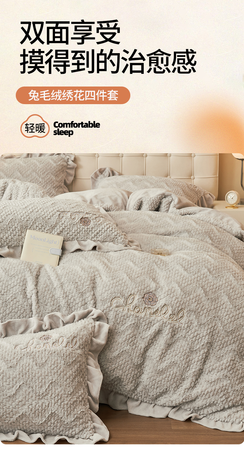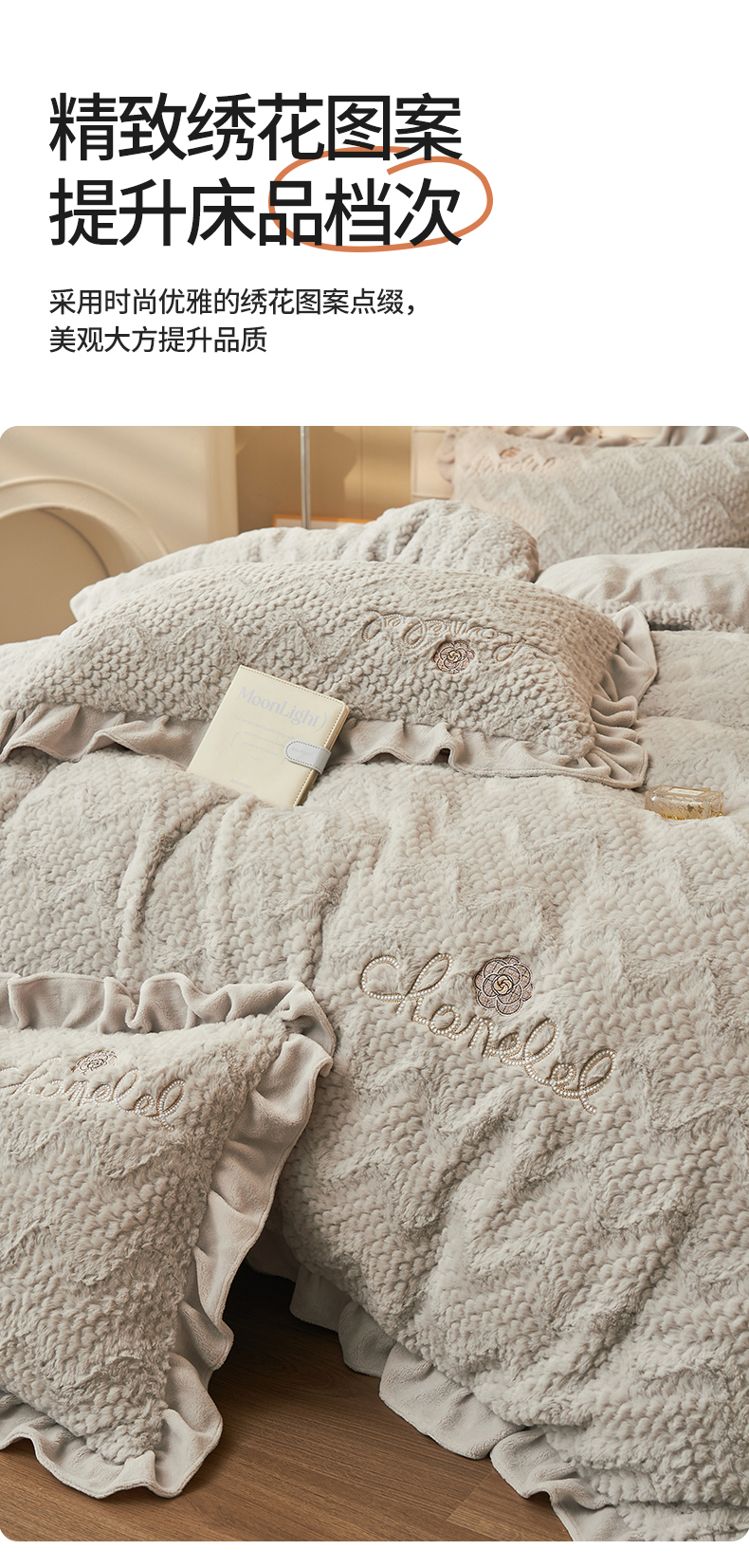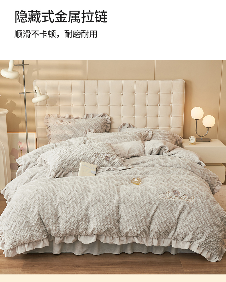 恒爱家纺 2023新款兔毛绒绣花四件套 波浪款-浅灰