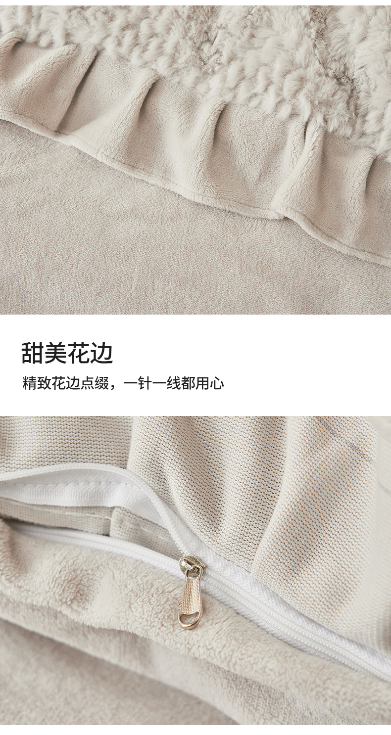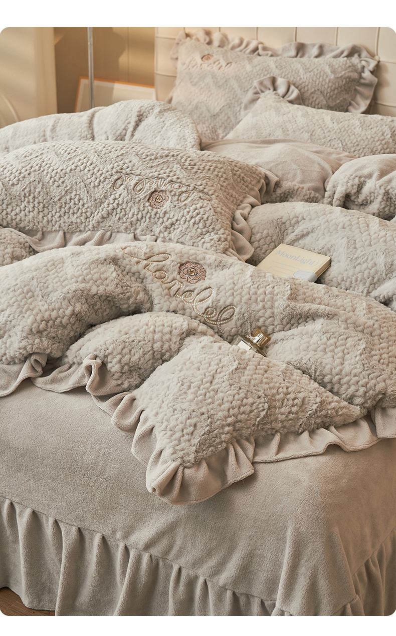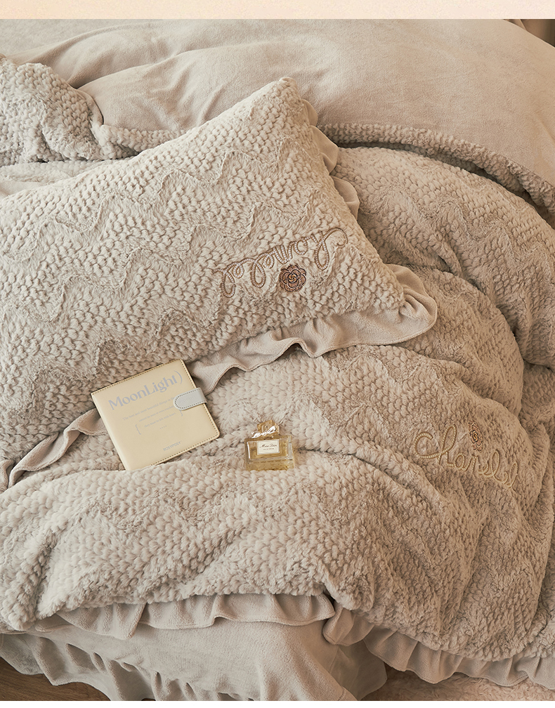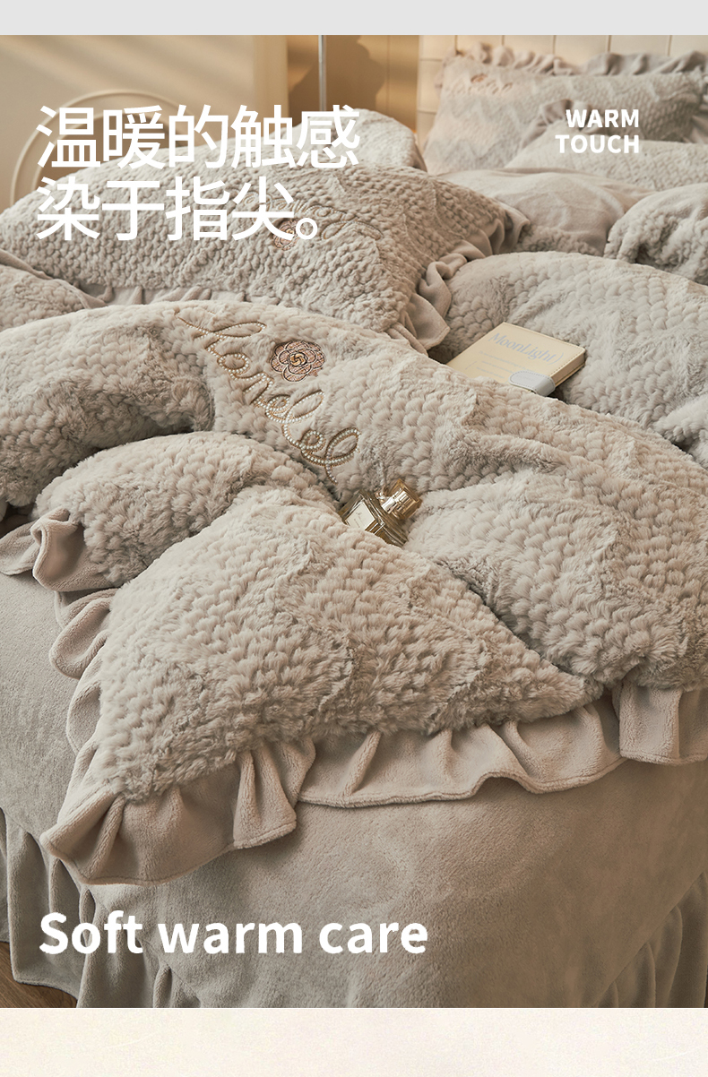 恒爱家纺 2023新款兔毛绒绣花四件套 波浪款-浅灰
