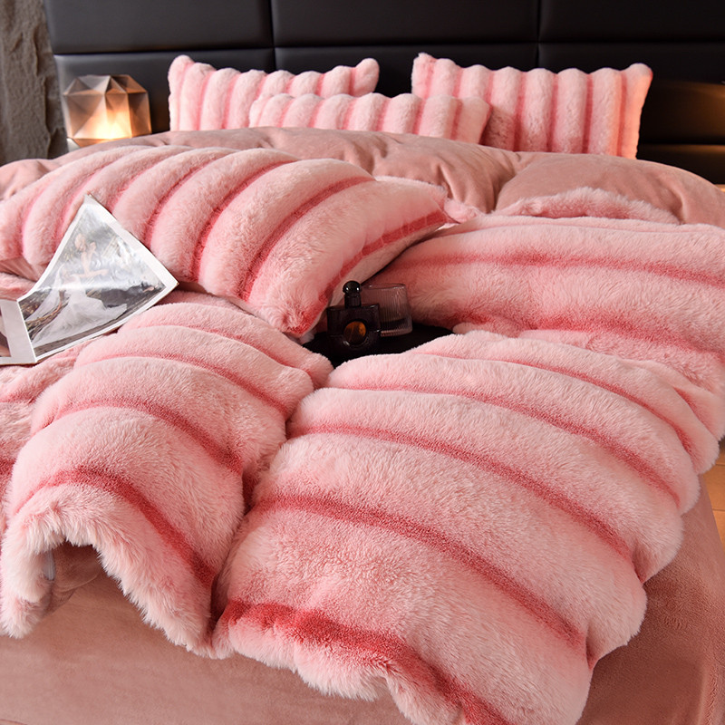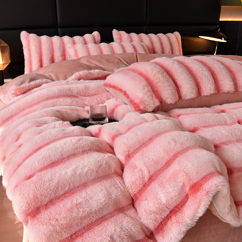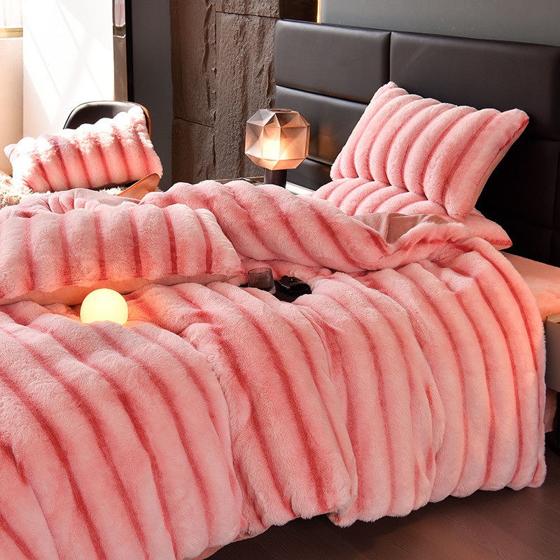 商品名称:同田家纺 2023新款托卡斯兔毛绒四件套 柔雾粉
