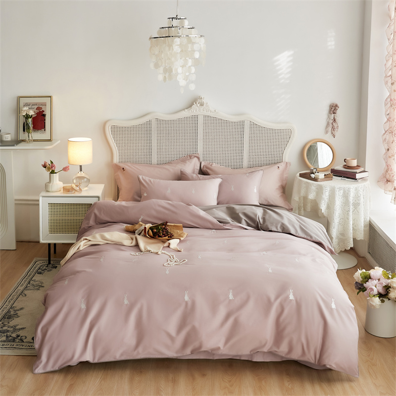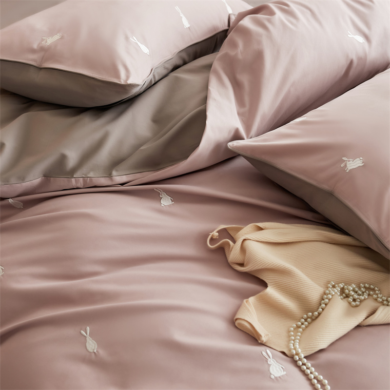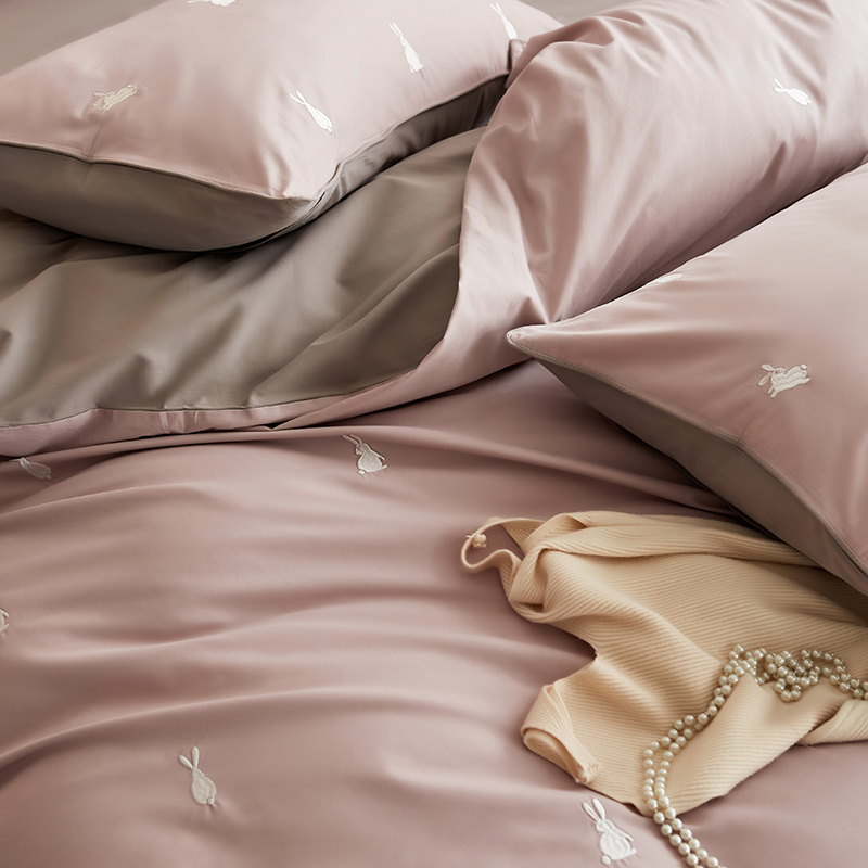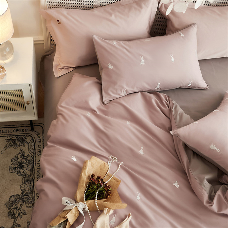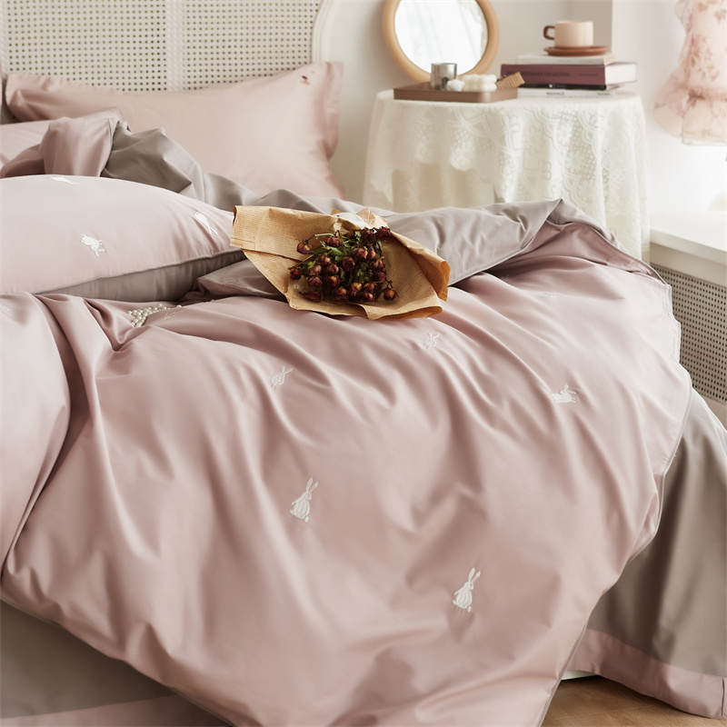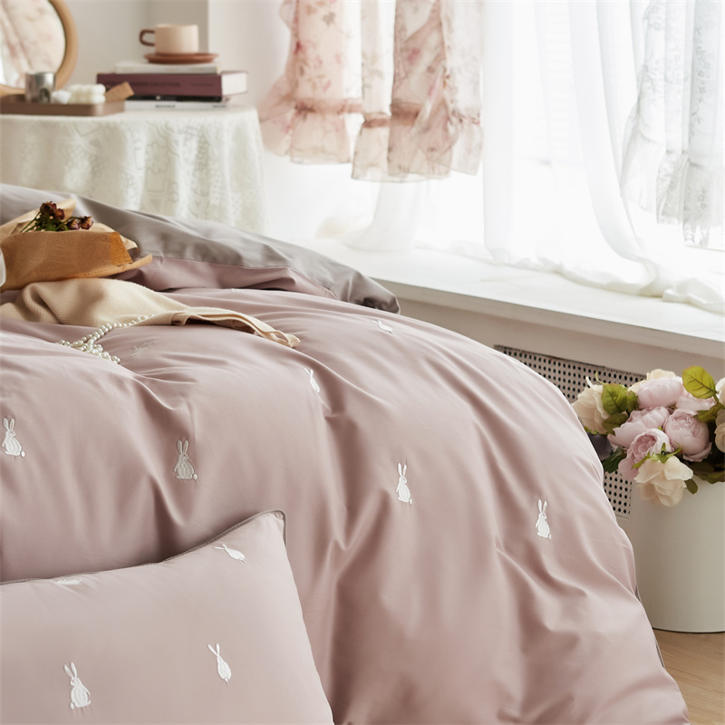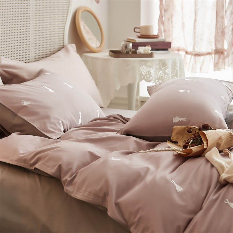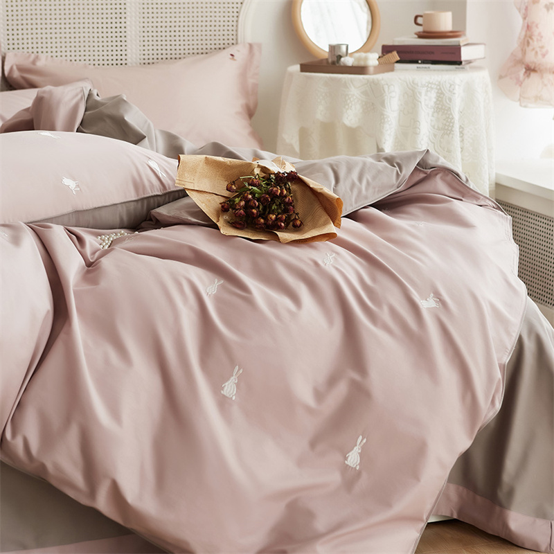 云胡50双股新疆长绒棉床上用品四件套陶瓷轻磨毛逃家小兔
