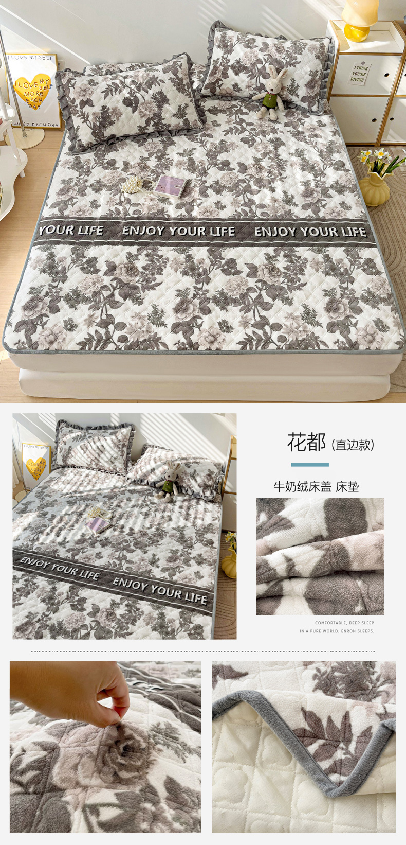 羽爱家纺 2024新款牛奶绒直边款床盖床垫 花都
