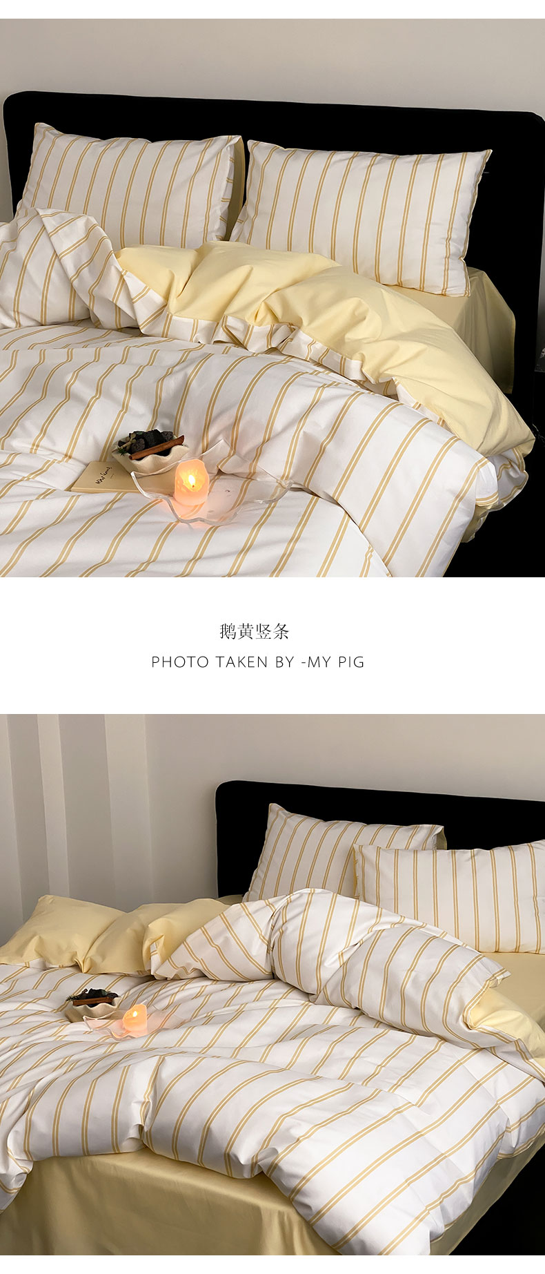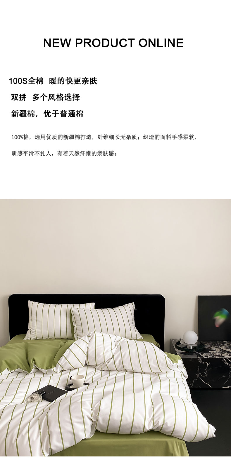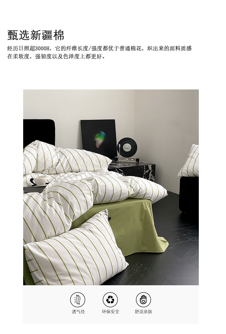 商品名称:Mr.pig猪先生水洗棉 2023新款A类全棉印花竖条纹四件套 牛油果竖条