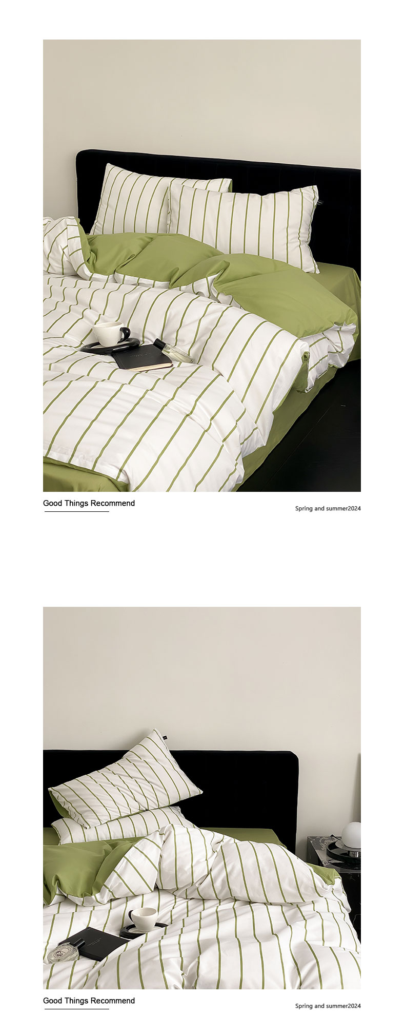 Mr.pig猪先生水洗棉 2023新款A类全棉印花竖条纹四件套 牛油果竖条