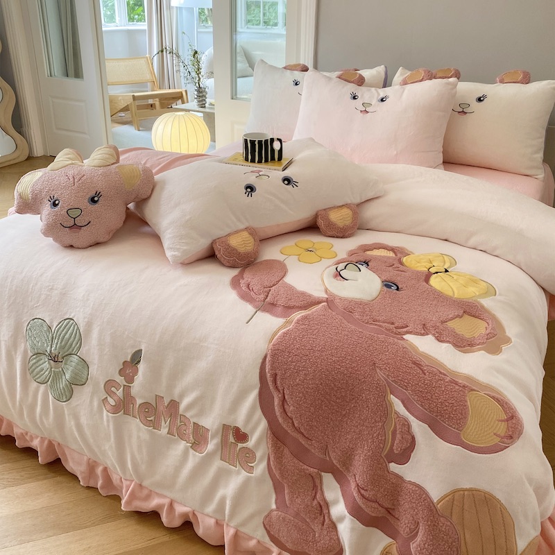 紫碧螺 2023新款牛奶绒系列四件套-雪莉玫 雪莉玫-粉色