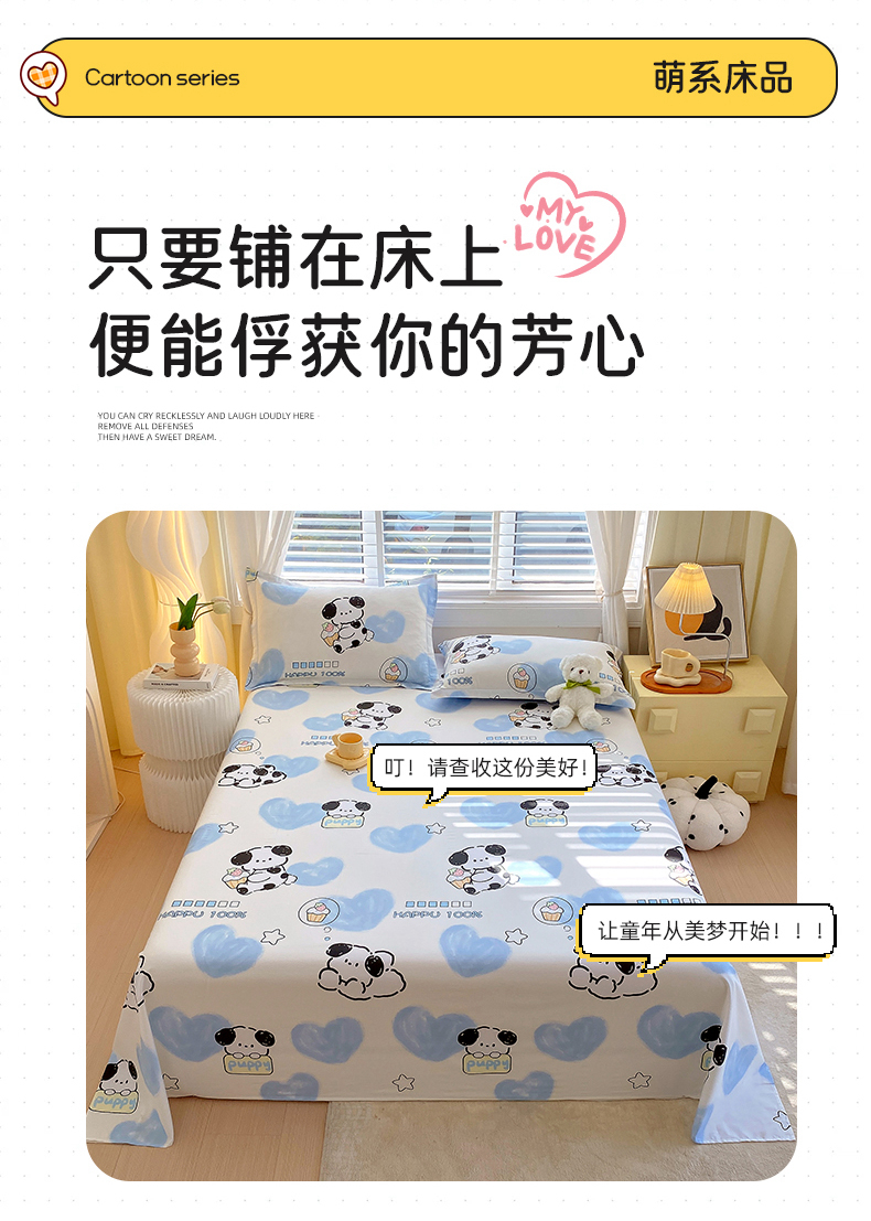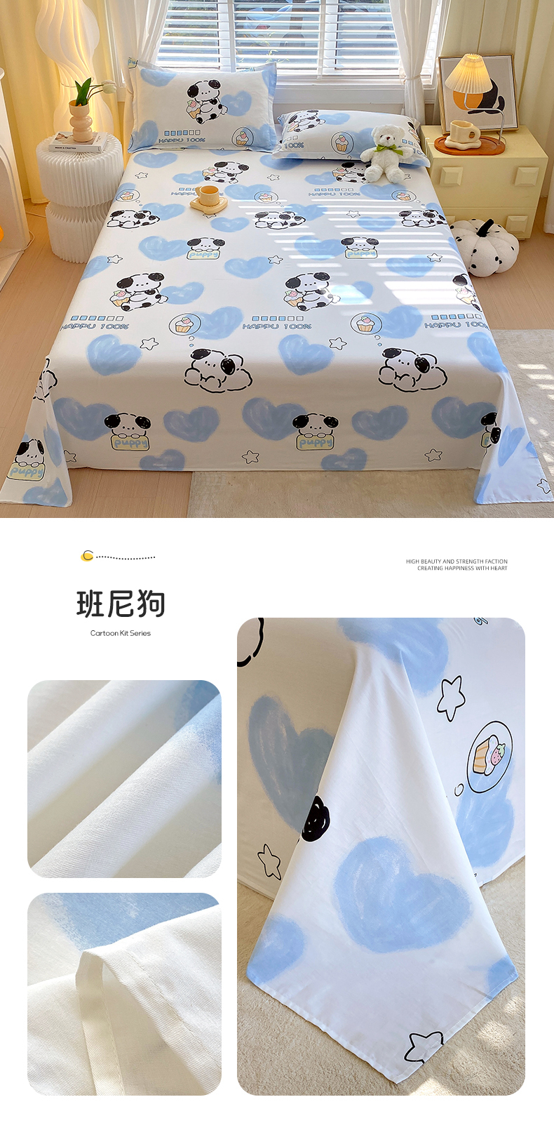 商品名称:拾物记 2024新款A类喷气全棉12868卡通印花单品床单 班尼狗0