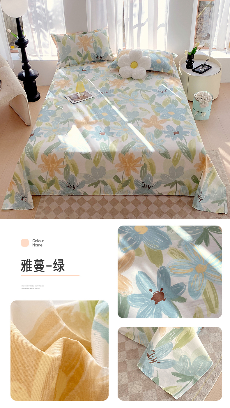 商品名称:拾物记 2024新款A类喷气全棉12868卡通印花单品床单 雅蔓-绿