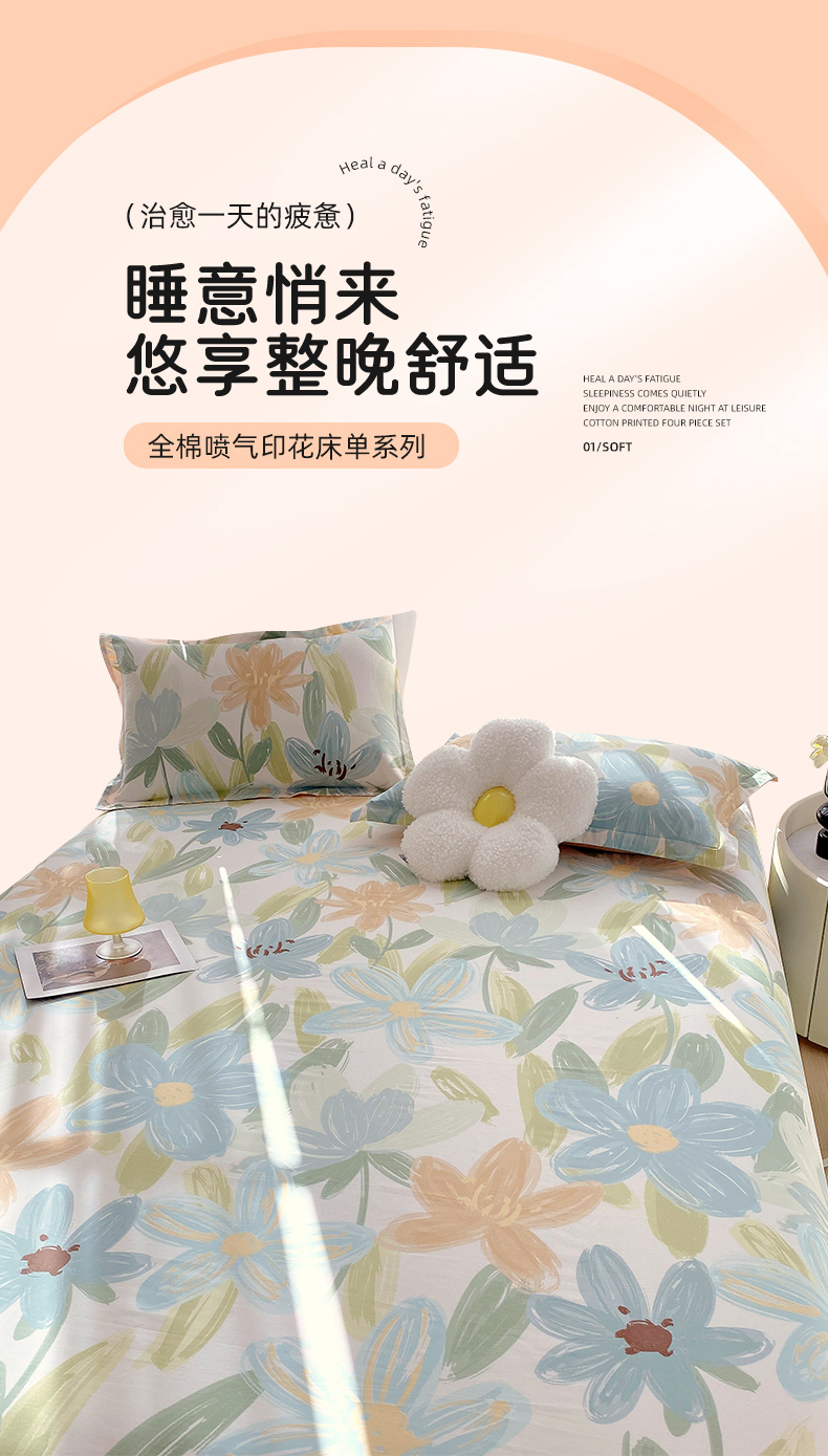 (总)拾物记 2023新款全棉喷气花卉条纹格子系列单床单,阿华田,安暖如夏,青柠半夏,洋香晚玉,银杏果实,云上花园
