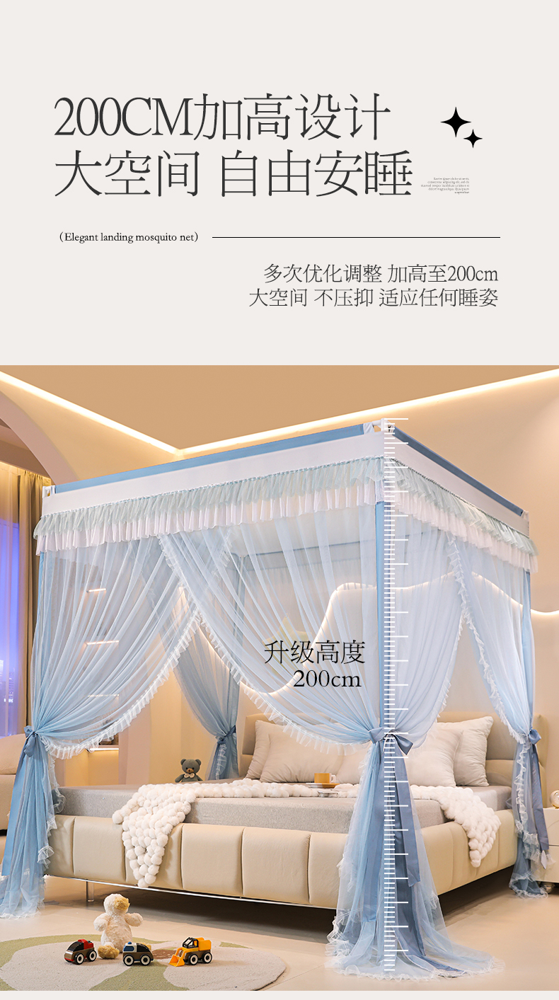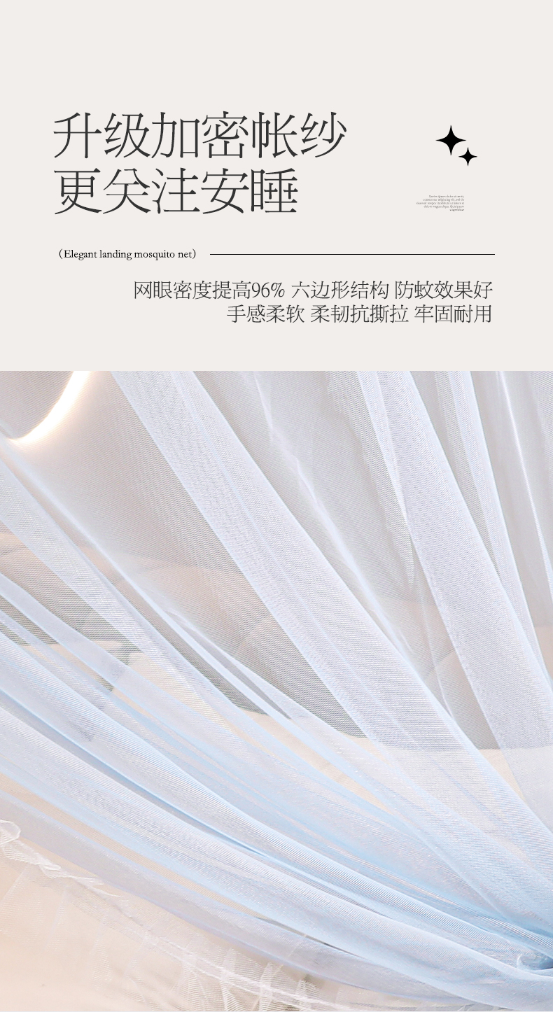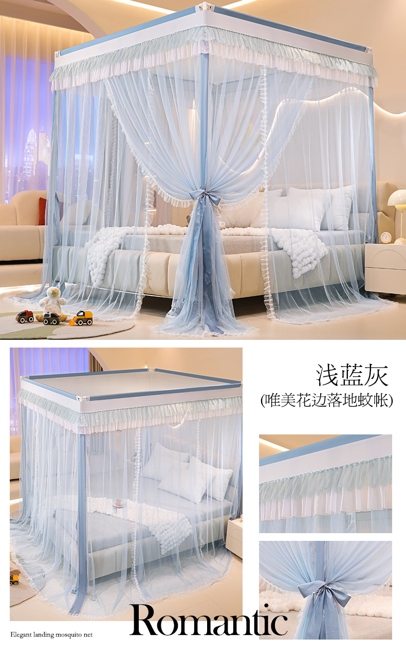 商品名称:迪凡保罗蚊帐 2025新款2409外穿杆落地宫廷蚊帐 浅蓝灰