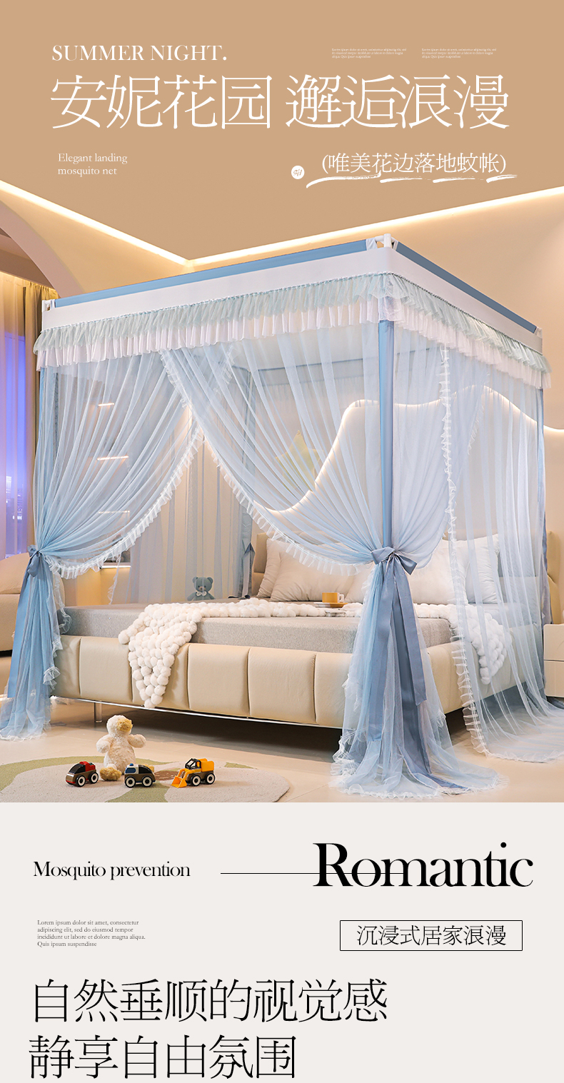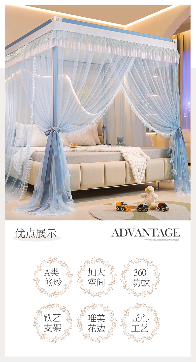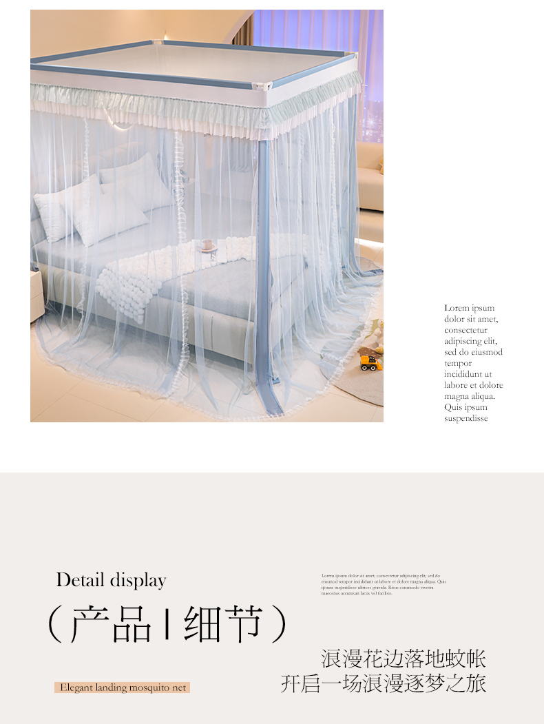 商品名称:迪凡保罗蚊帐 2025新款2409外穿杆落地宫廷蚊帐 浅蓝灰