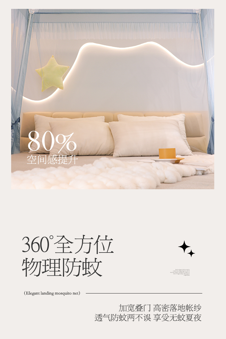 迪凡保罗蚊帐 2025新款2409外穿杆落地宫廷蚊帐 浅蓝灰