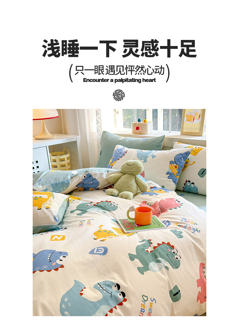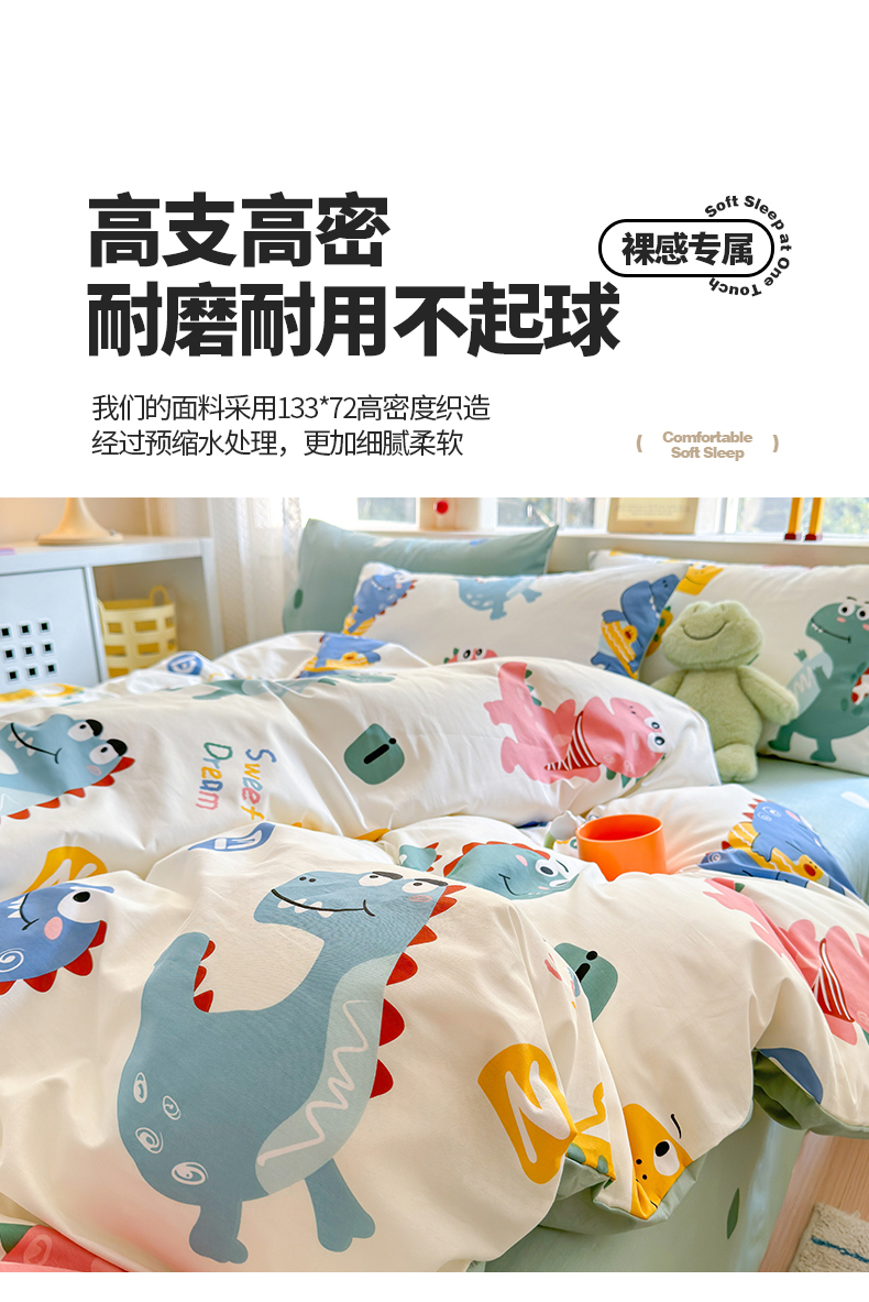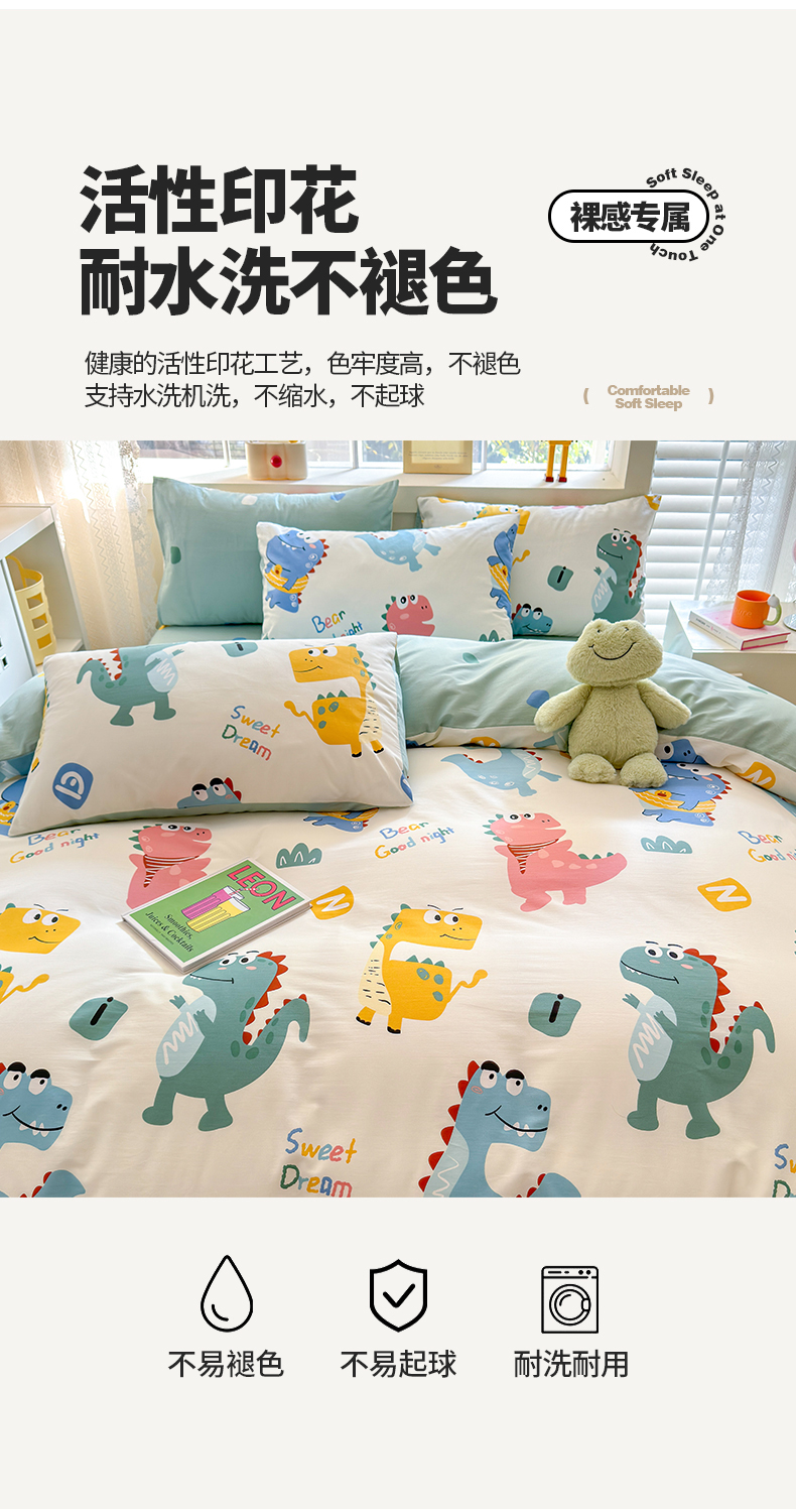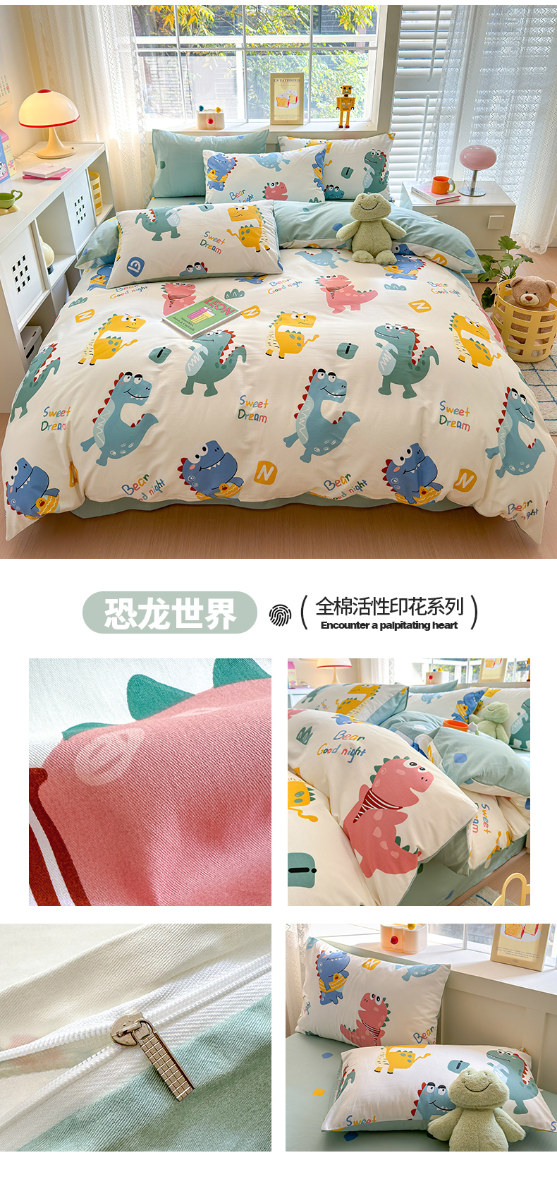 商品名称:清雅福 2024新款全棉13372小清新活性印花四件套 恐龙世界