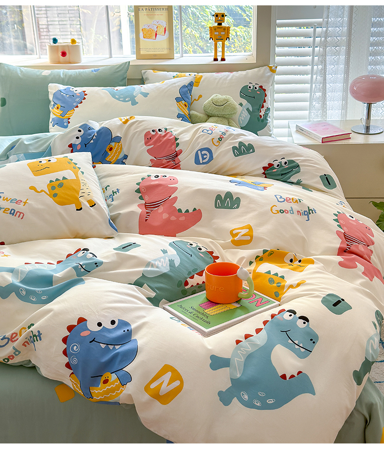 清雅福 2024新款全棉13372小清新活性印花四件套 恐龙世界