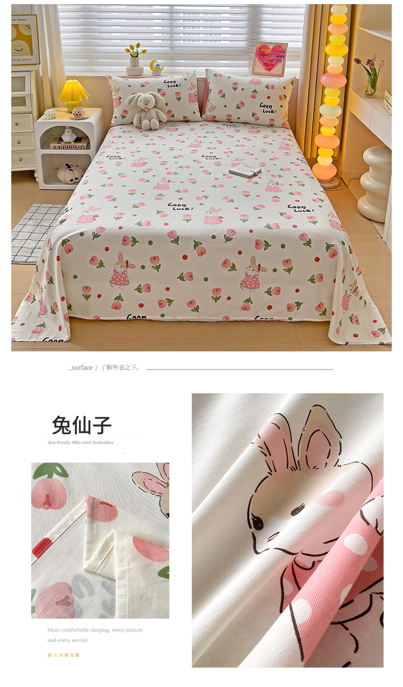 • 91家纺网 家纺一手货源 找家纺 名兮家居 2024新款小清新全棉单品床单 兔仙子