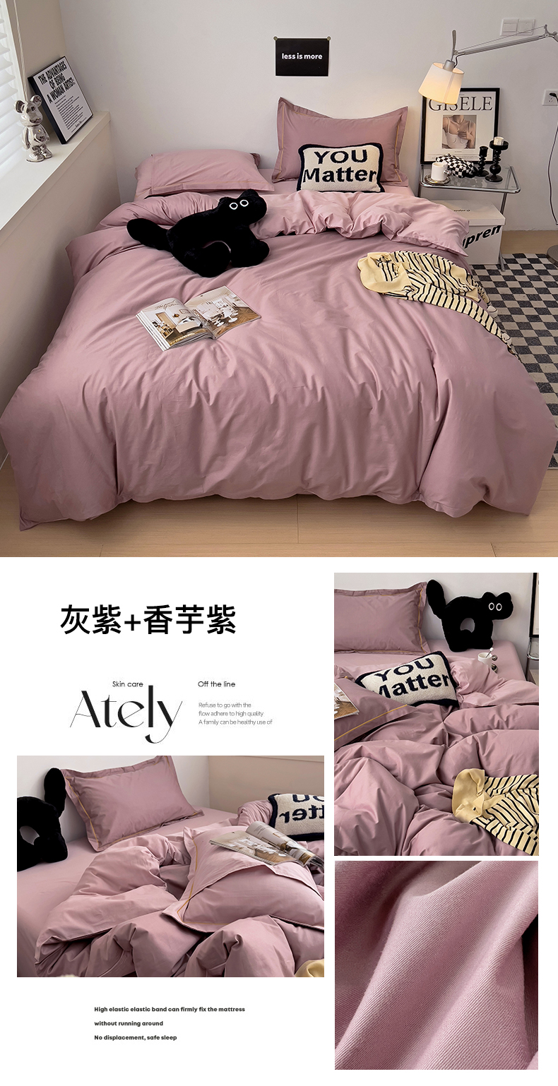 当前位置: 91家纺网 > 商品网购 > 床品套件 > 四件套 > 全棉普通四件套 > 恩泽家纺 2026新款全棉13372纯色双拼系列四件套 灰紫+香芋紫