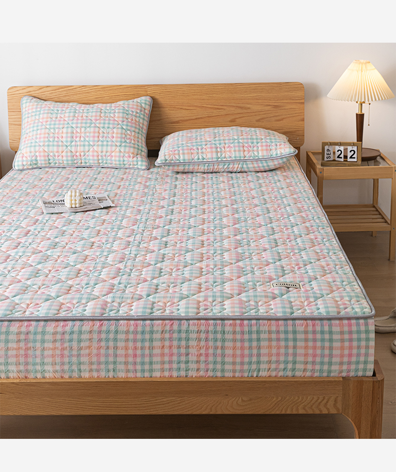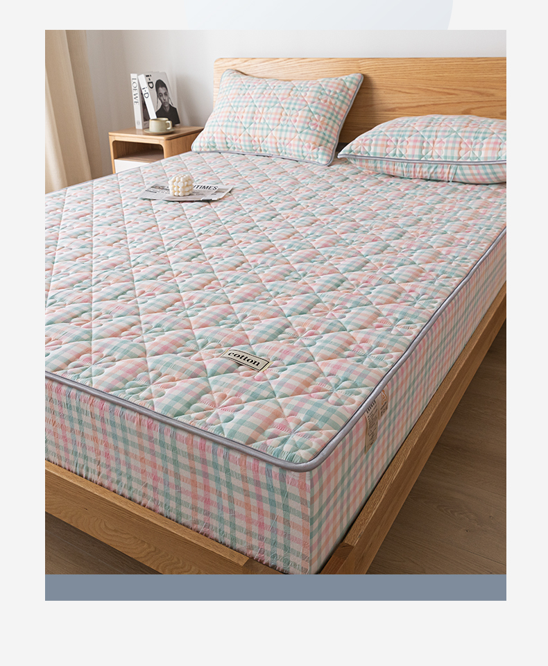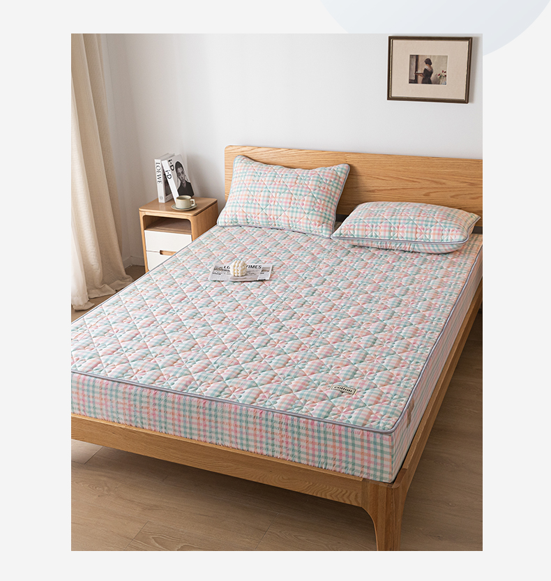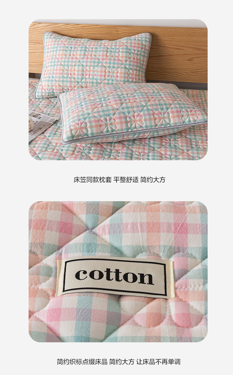 • 91家纺网 家纺一手货源 找家纺 芬晴家纺 2024新款纯棉色织夹棉床笠 冰淇淋格