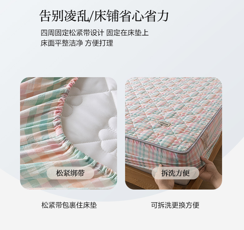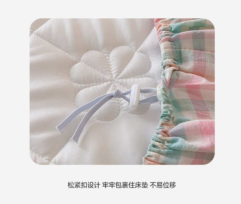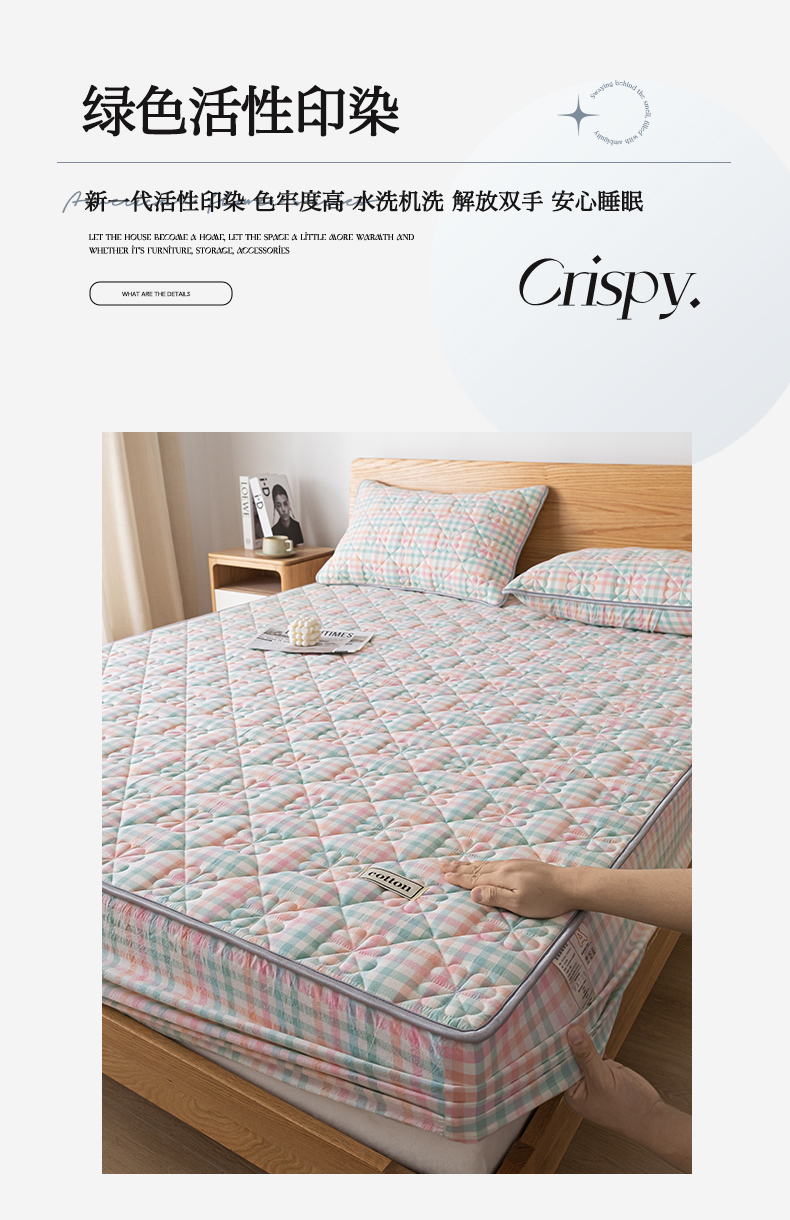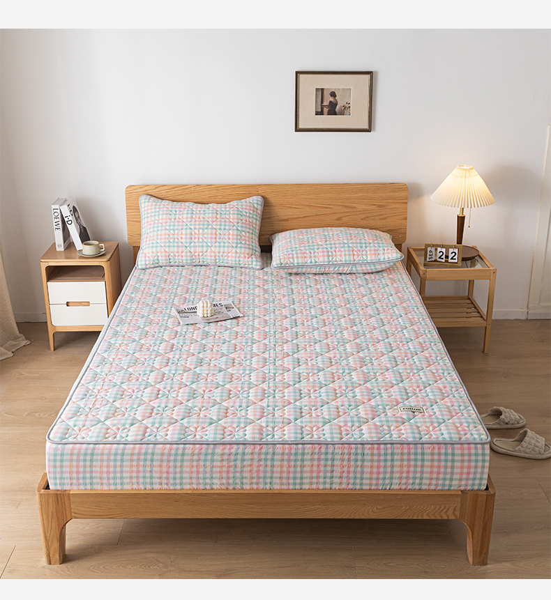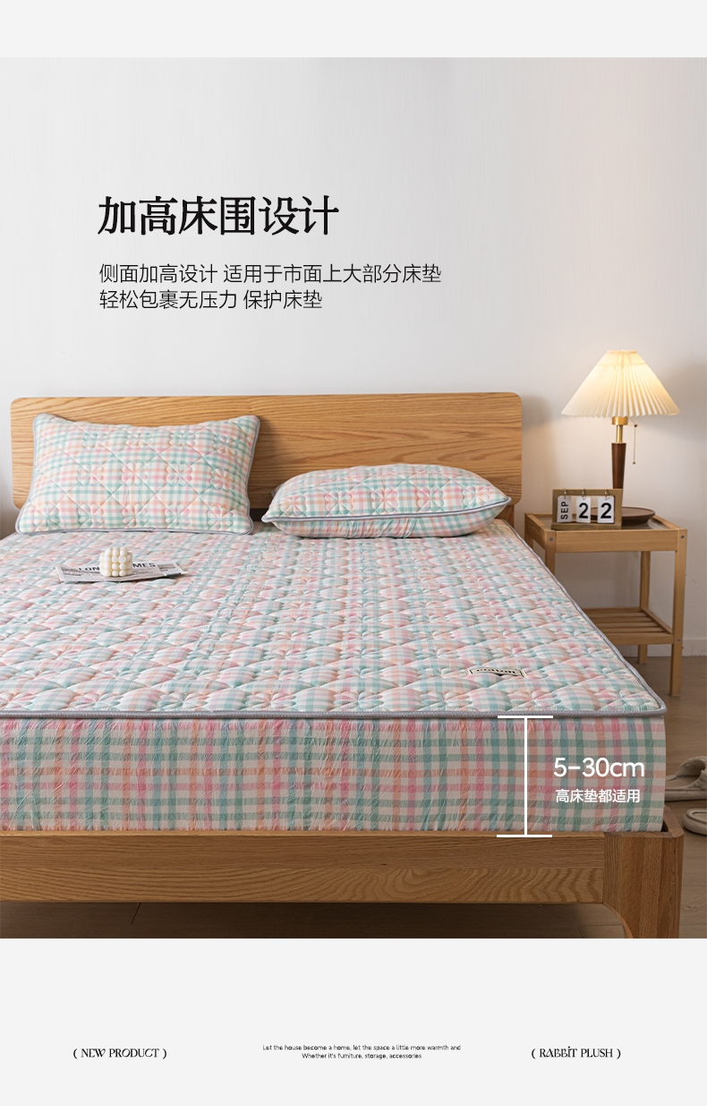 • 91家纺网 家纺一手货源 找家纺 芬晴家纺 2024新款纯棉色织夹棉床笠 冰淇淋格