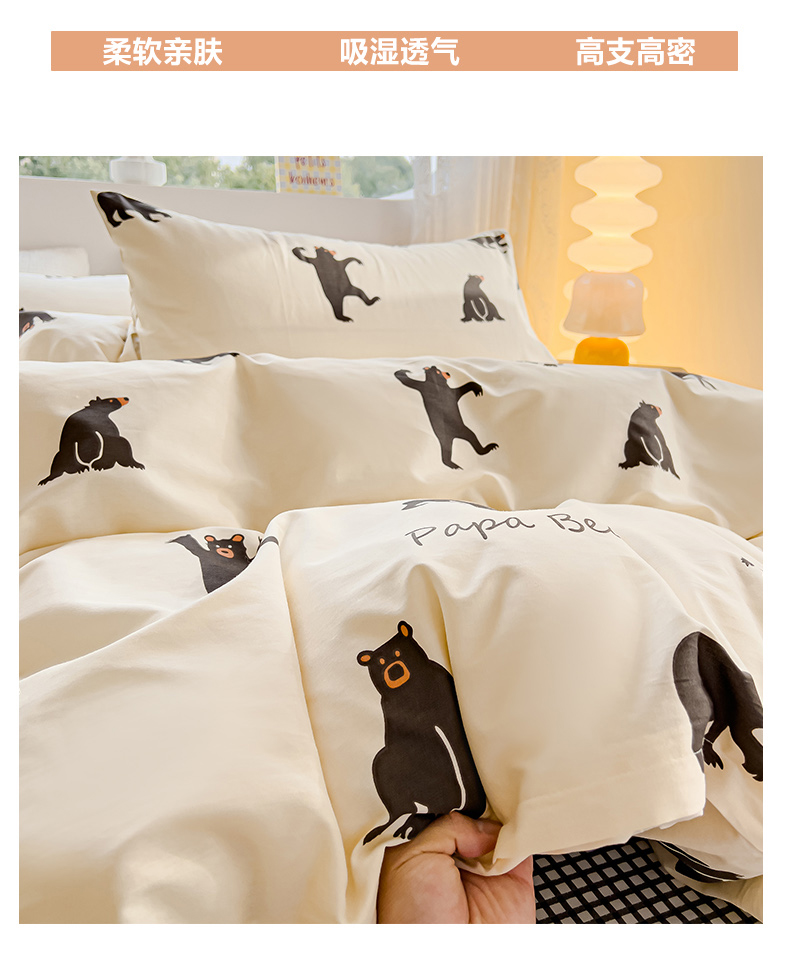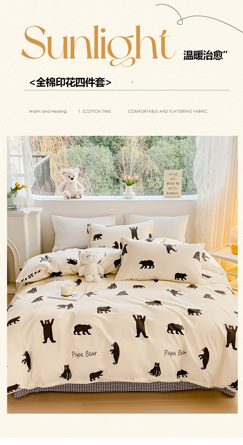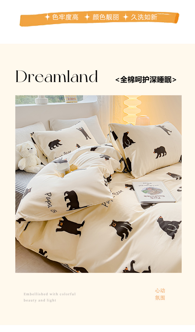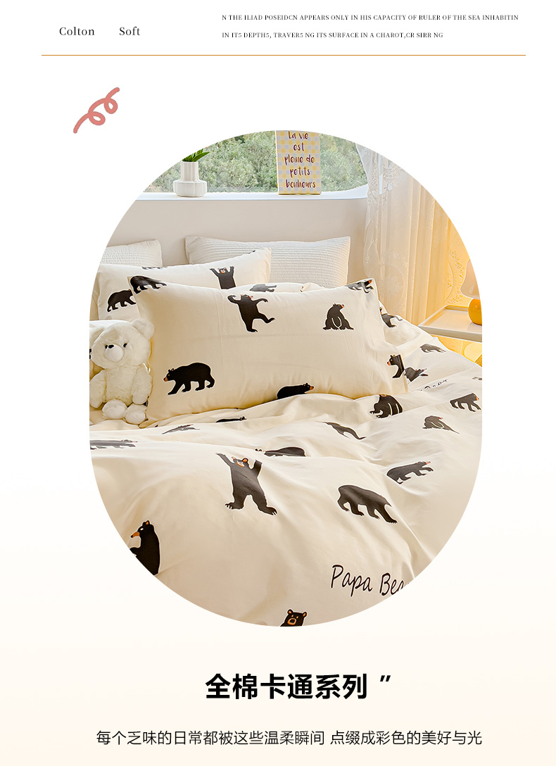 当前位置: 91家纺网 > 商品网购 > 床品套件 > 四件套 > 全棉普通四件套 > 感遇家纺 2024春夏新品全棉卡通印花四件套-第一批 跳舞小熊