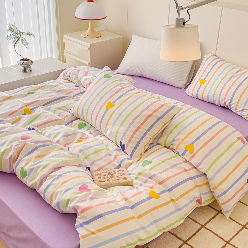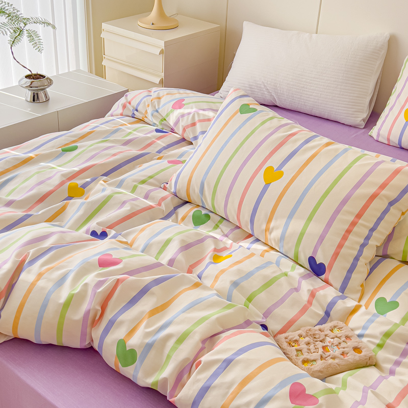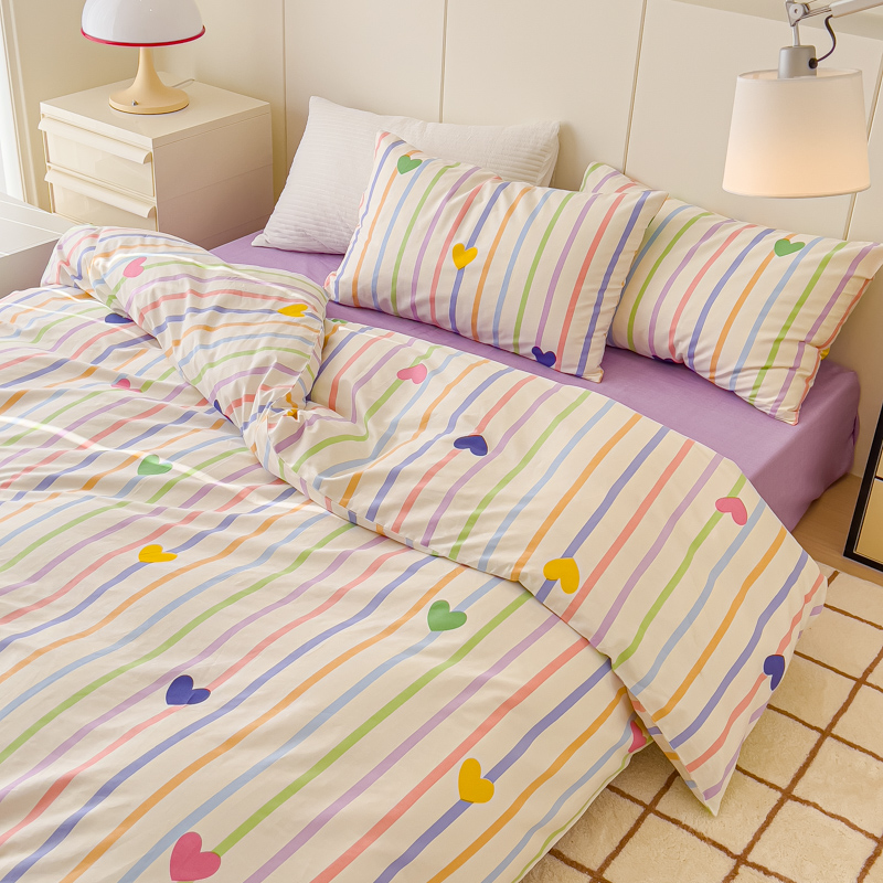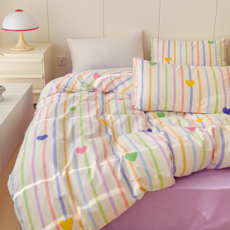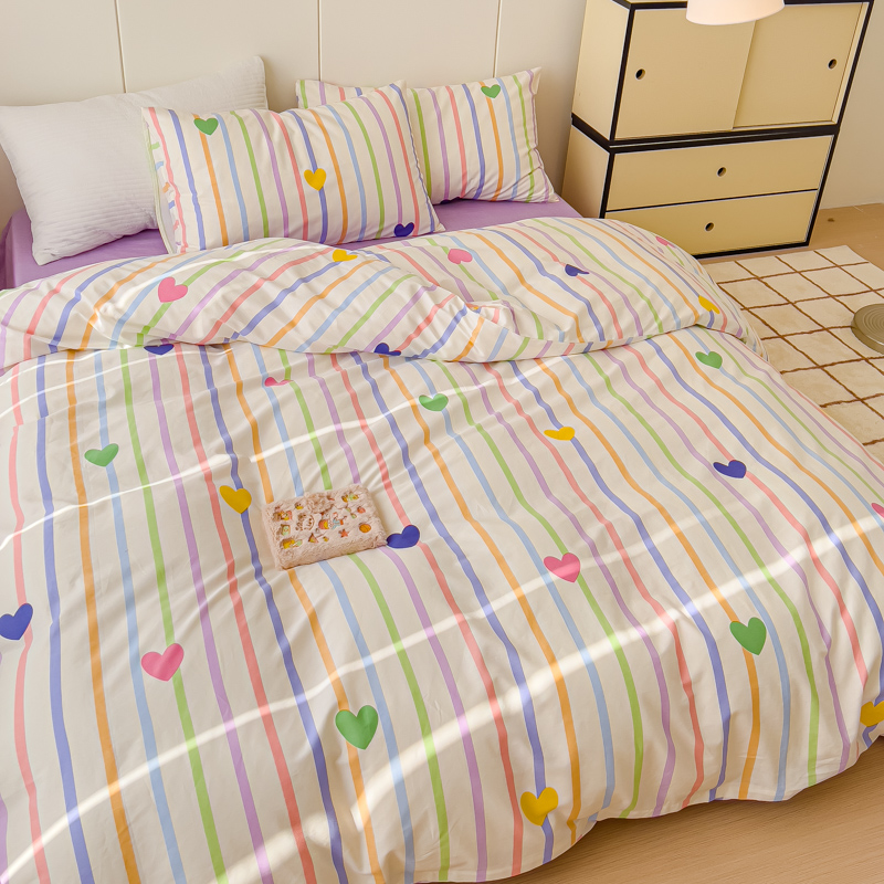 当前位置: 91家纺网 > 商品网购 > 床品套件 > 四件套 > 全棉普通四件套 > 感遇家纺 2024春夏新品全棉卡通印花四件套-第二批 彩色爱心