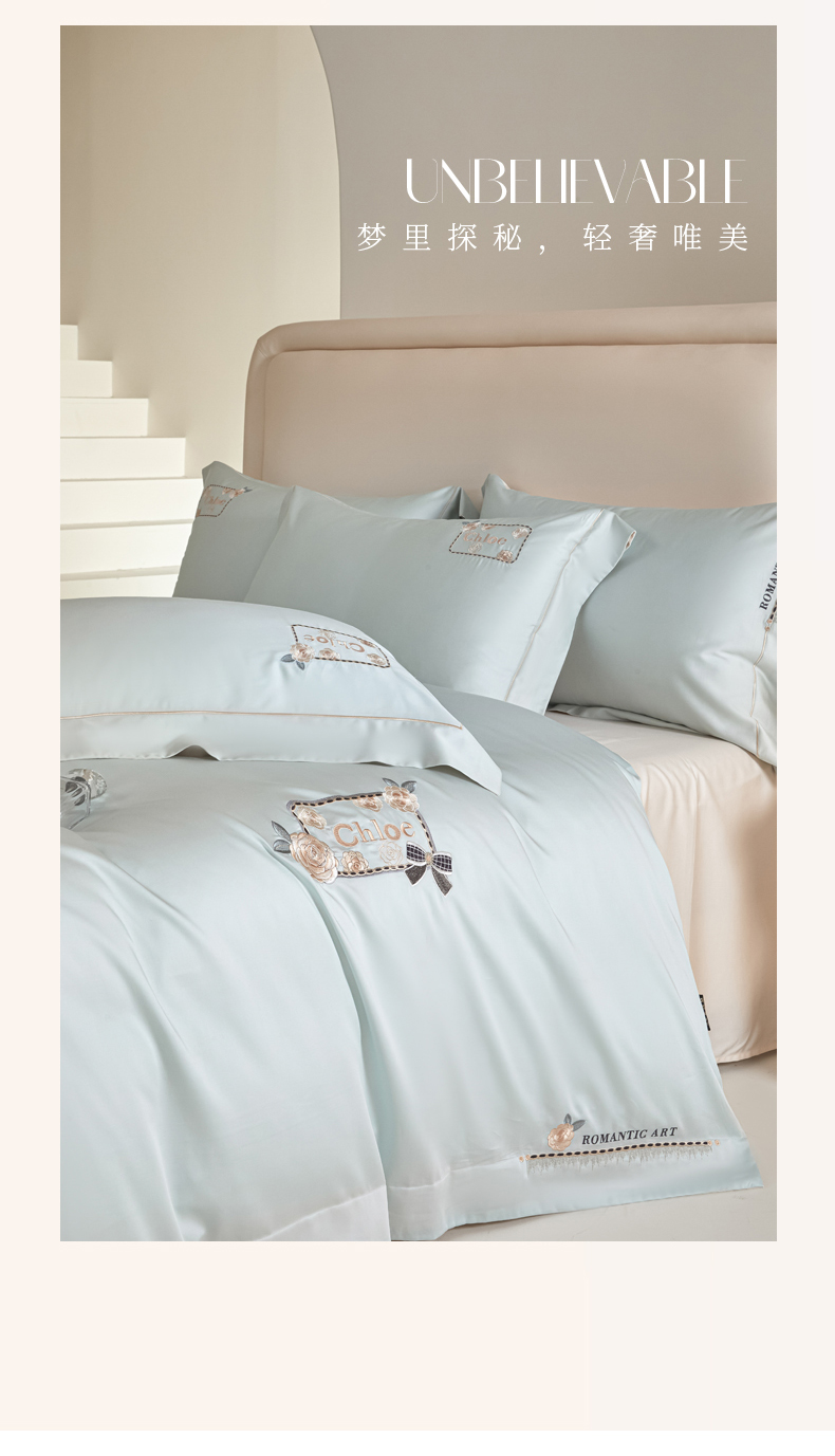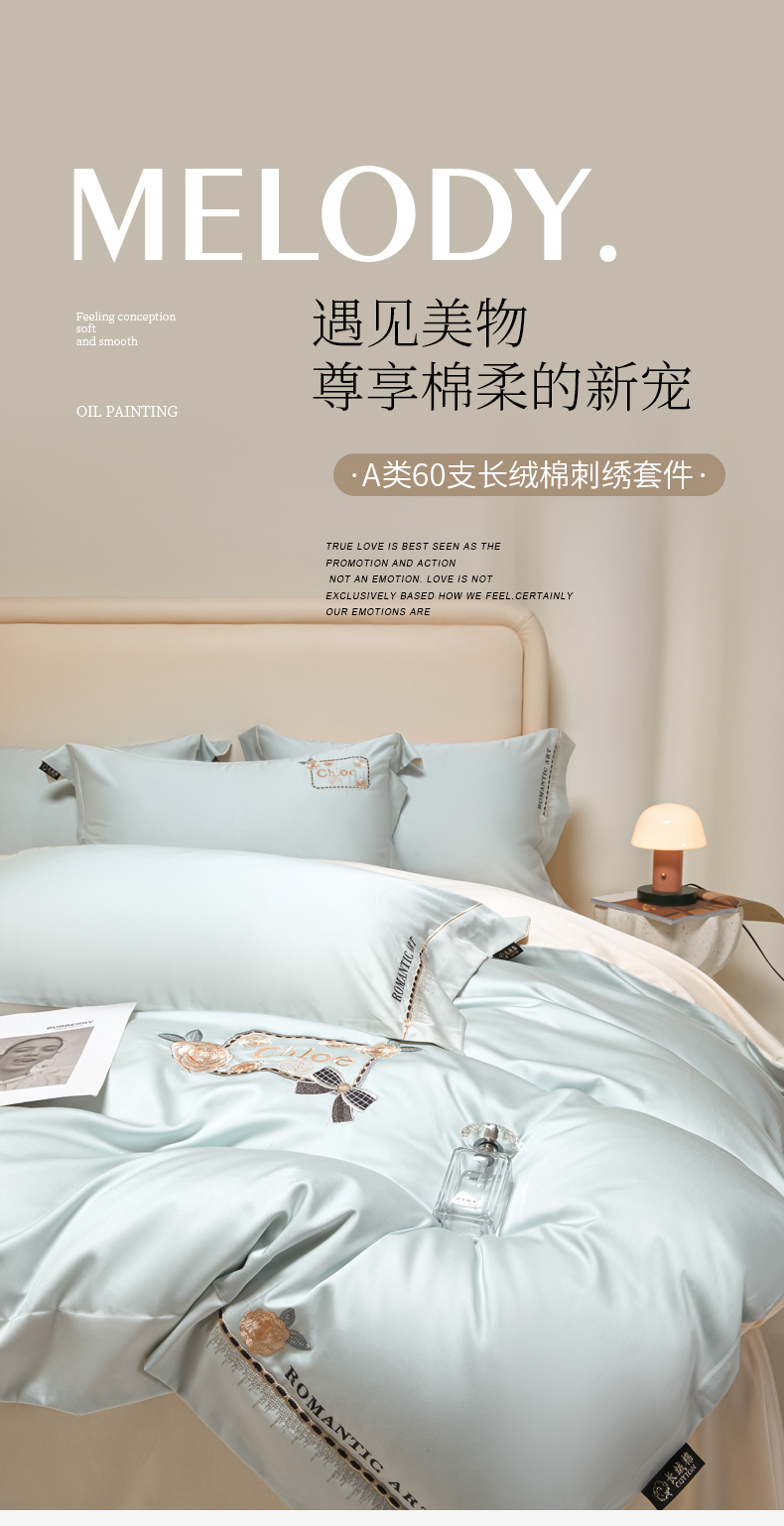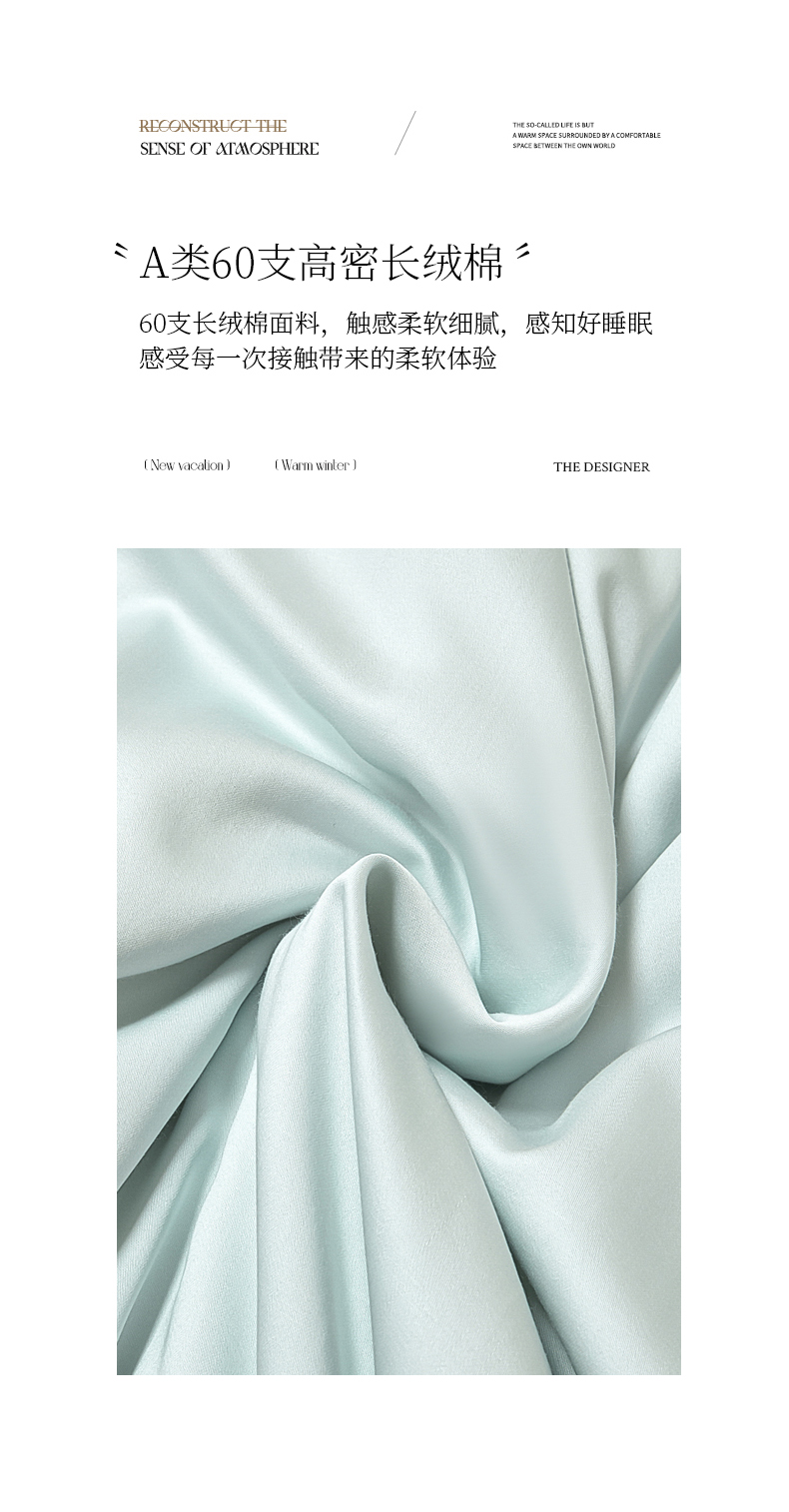 商品名称:(总)618家纺 2024新款A类60s长绒棉全棉纯棉四件套100%全棉可可系列 可可米蓝