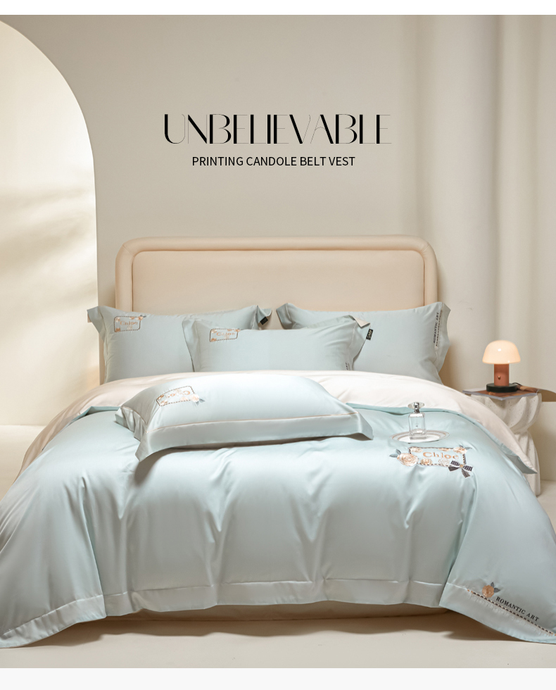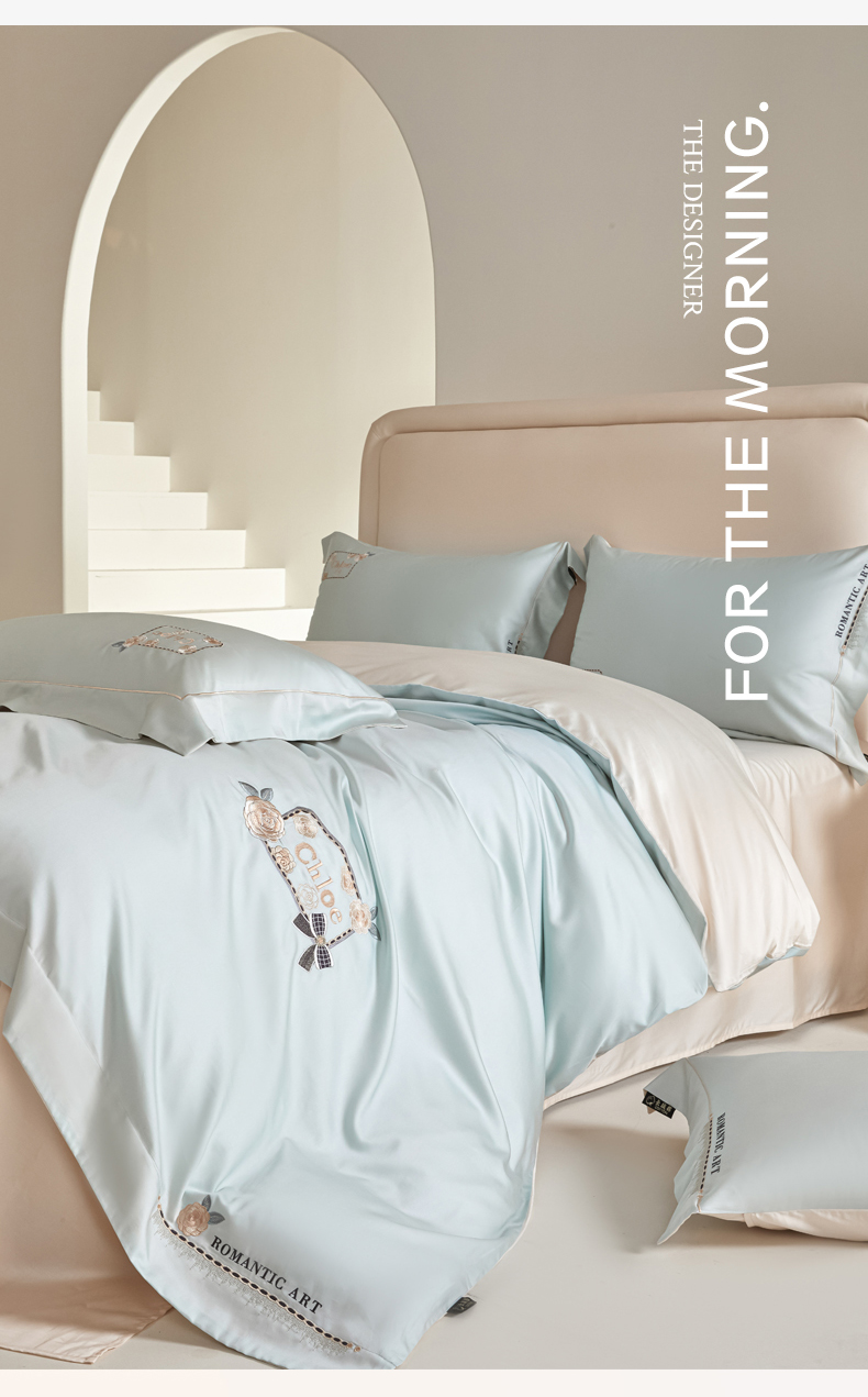 (总)618家纺 2024新款A类60s长绒棉全棉纯棉四件套100%全棉可可系列 可可米蓝