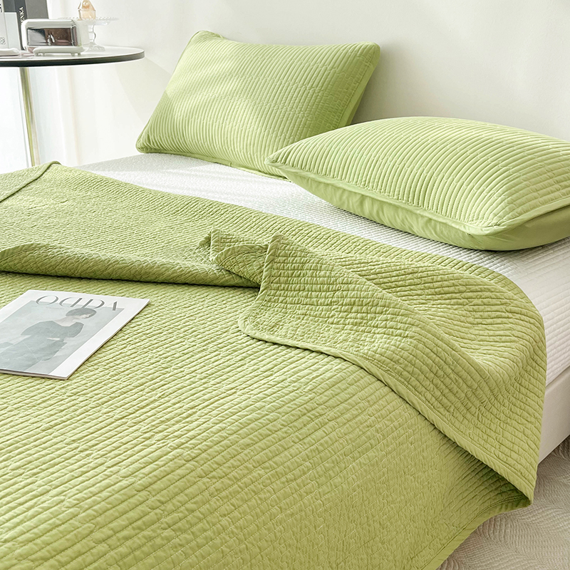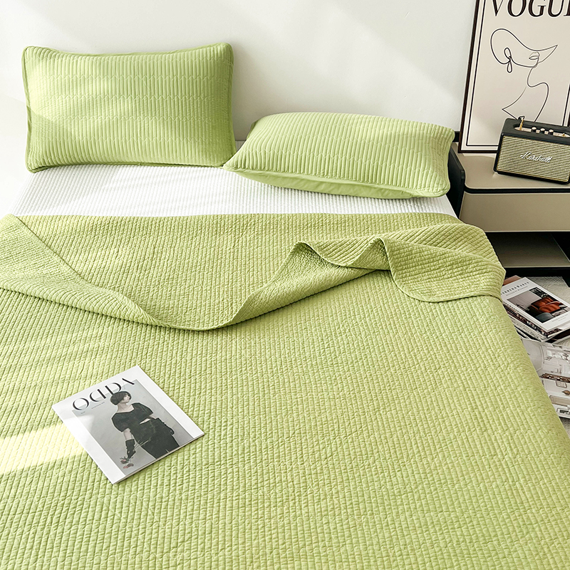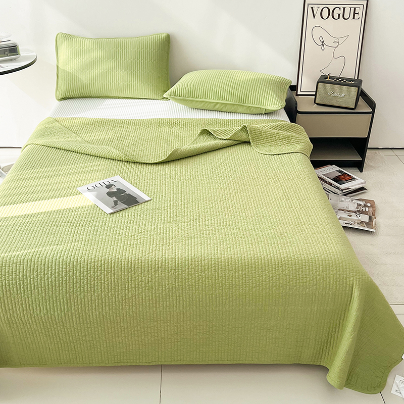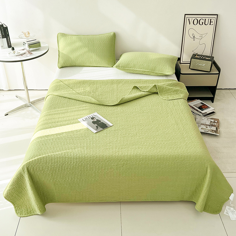 茉夕家纺 2024新款双面纯棉纯色棉花床盖 棉棉绿