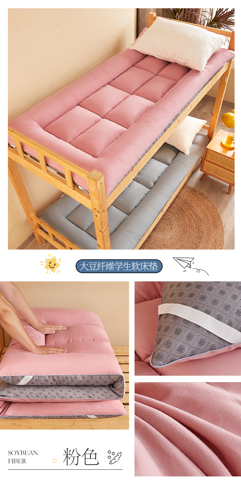 商品名称:招财狼床垫 2024新款单边大豆纤维学生款成人款学生床垫 单边-粉色