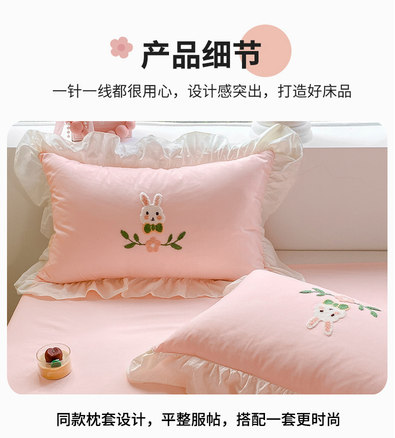 商品名称:(总)你好美丽 2025新款水洗棉萌兔毛巾绣花边四件套