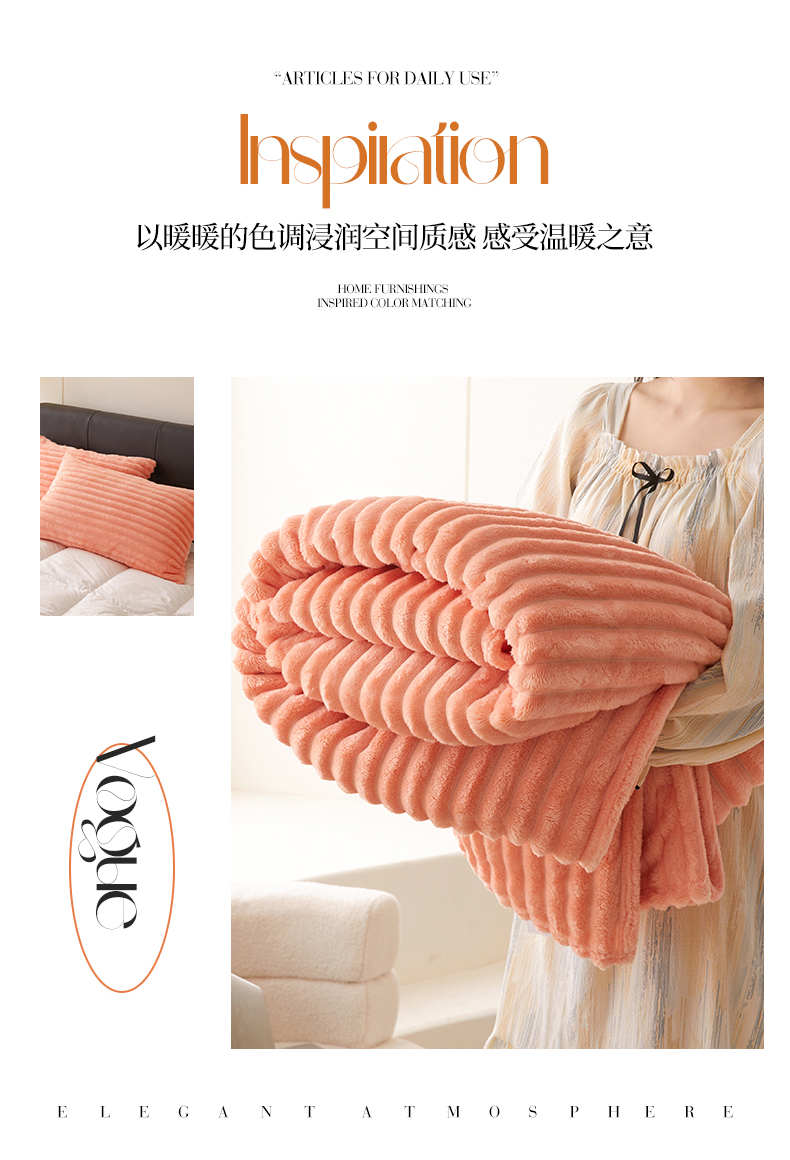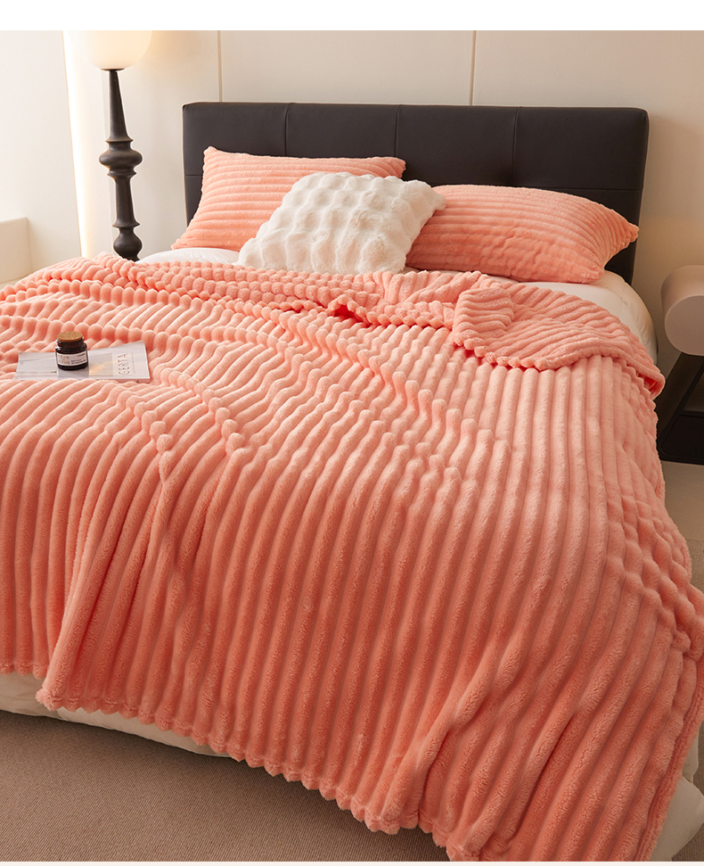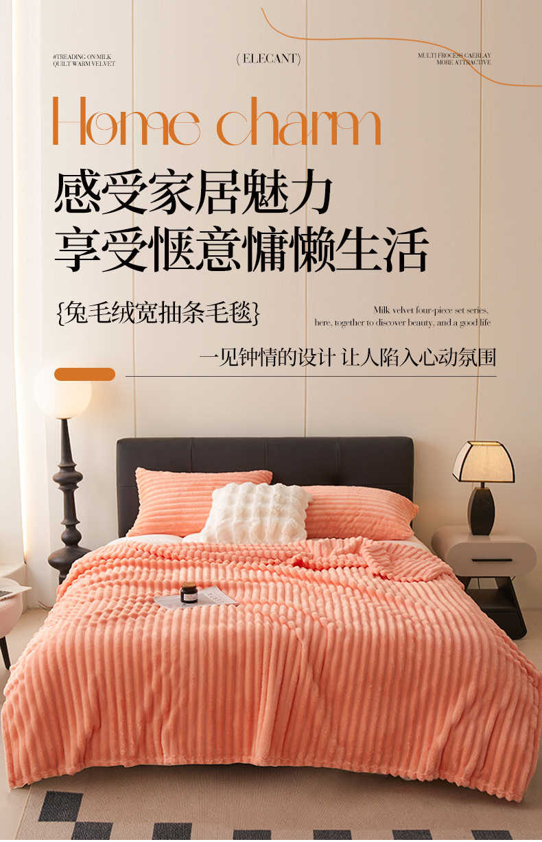 商品名称:春妮 2024新款兔毛绒宽抽条毛毯 暖阳橘