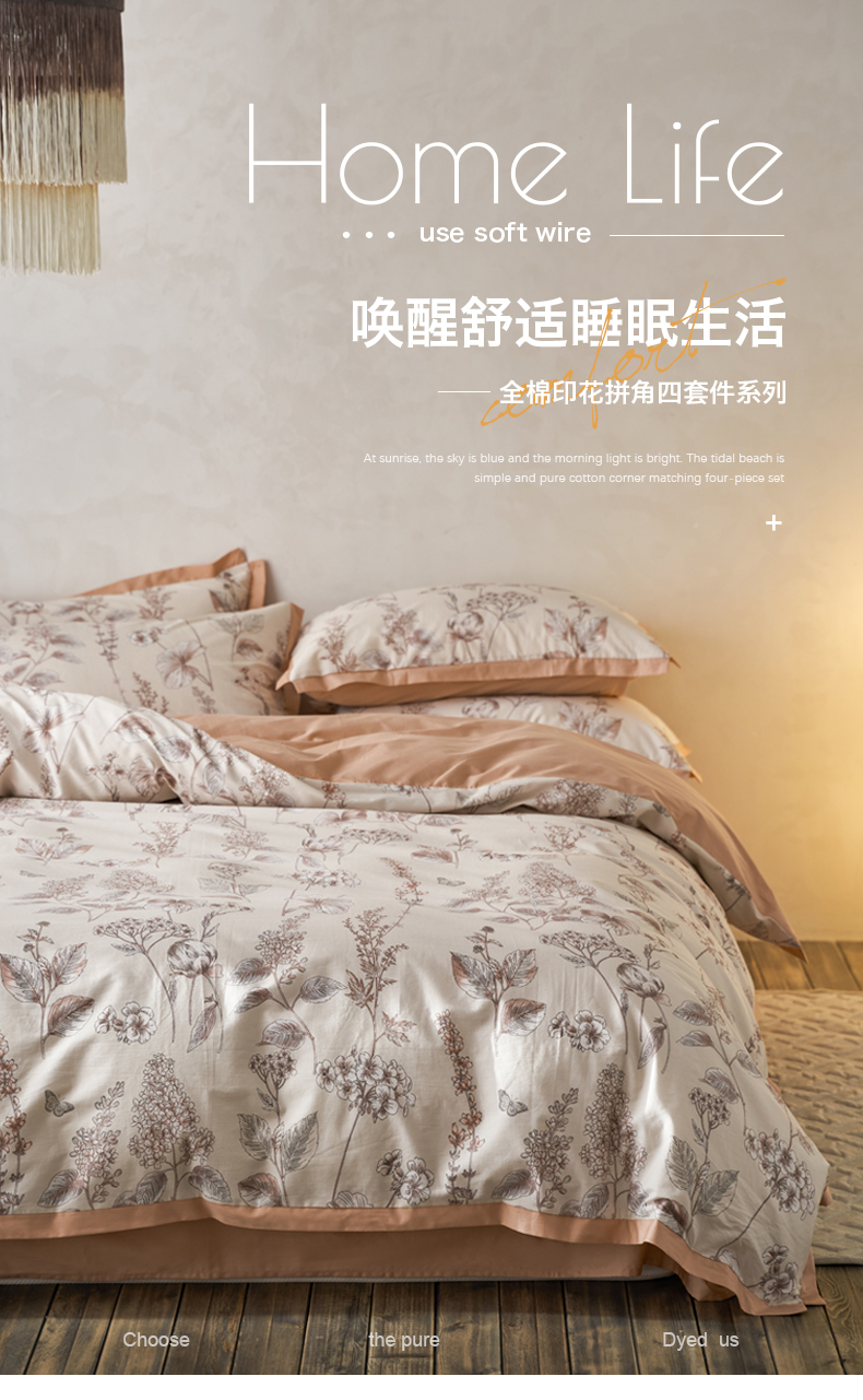 千朵森 2024新款全棉长绒棉拼角款印花四件套(风格一) 瑞莎
