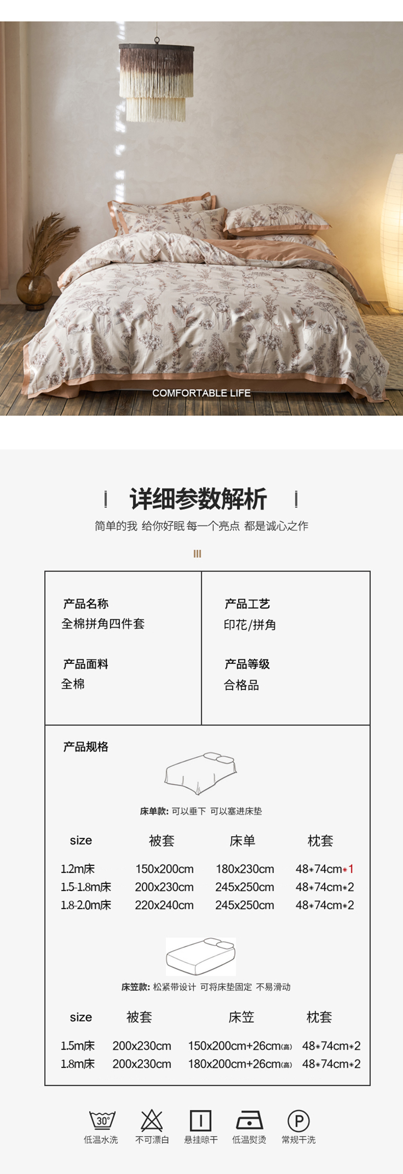 商品名称:千朵森 2024新款全棉长绒棉拼角款印花四件套(风格一) 瑞莎