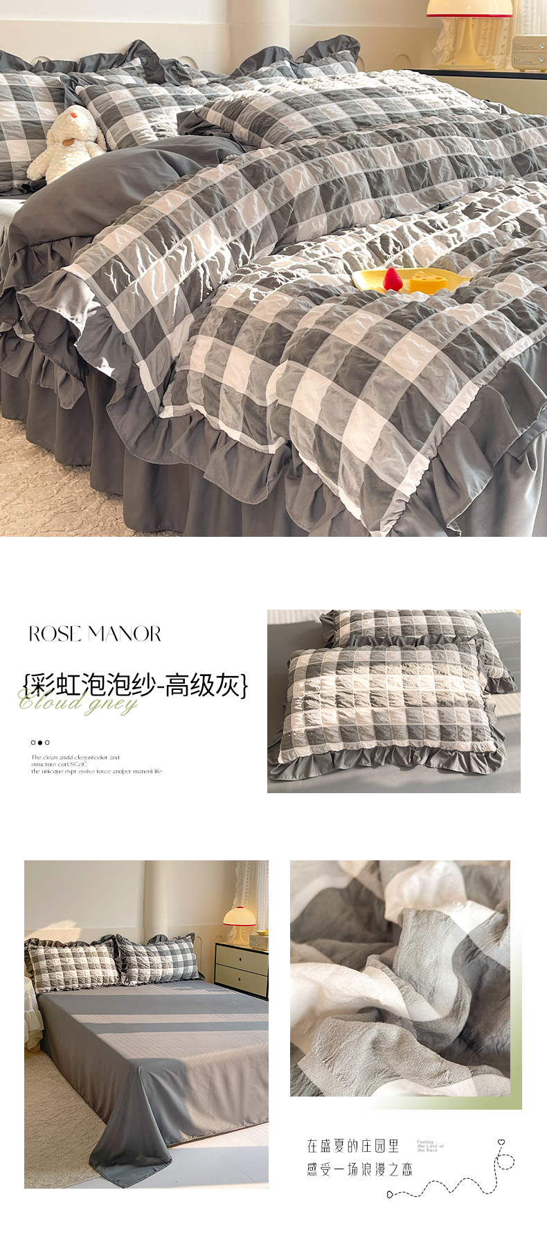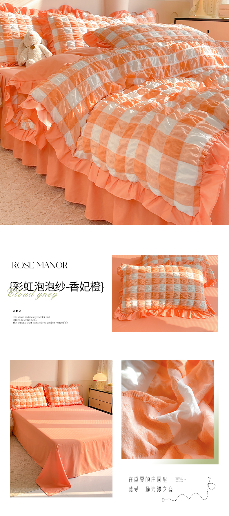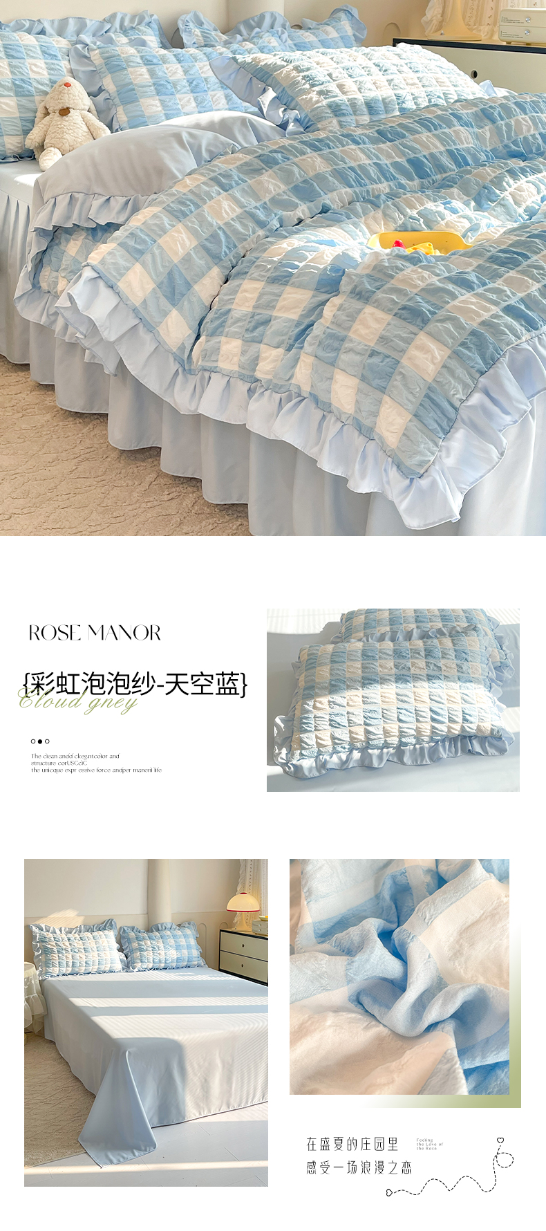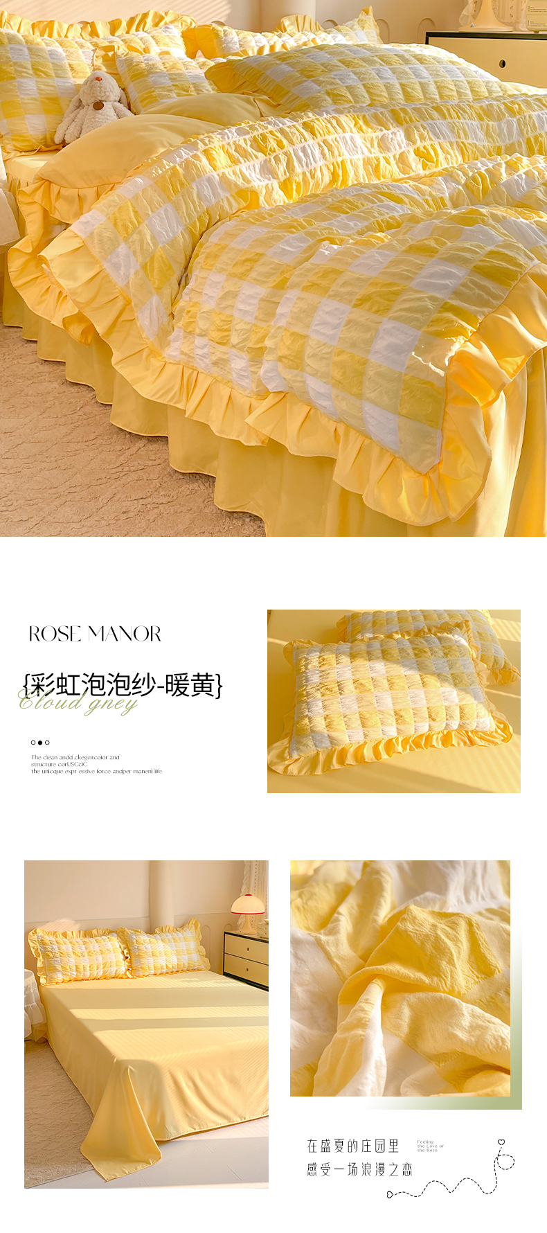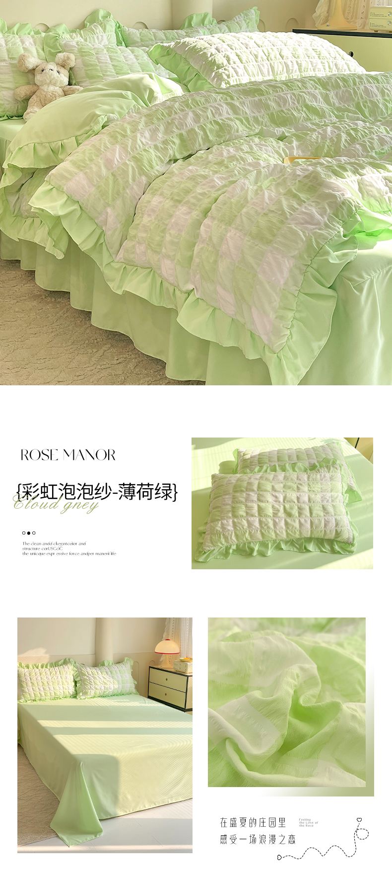商品名称:(总)九诺 2024春夏新款泡泡纱花边彩虹泡芙系列四件套