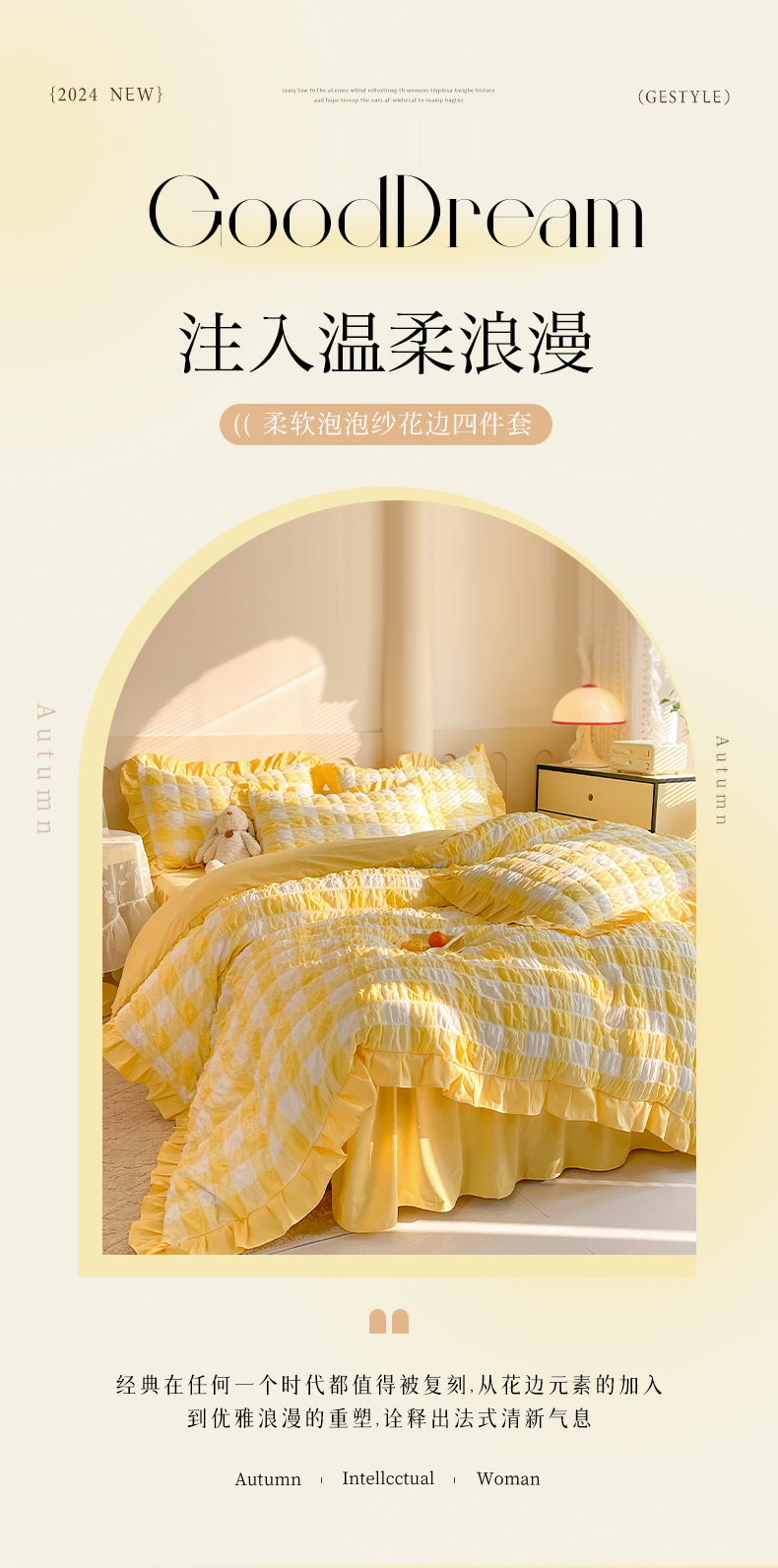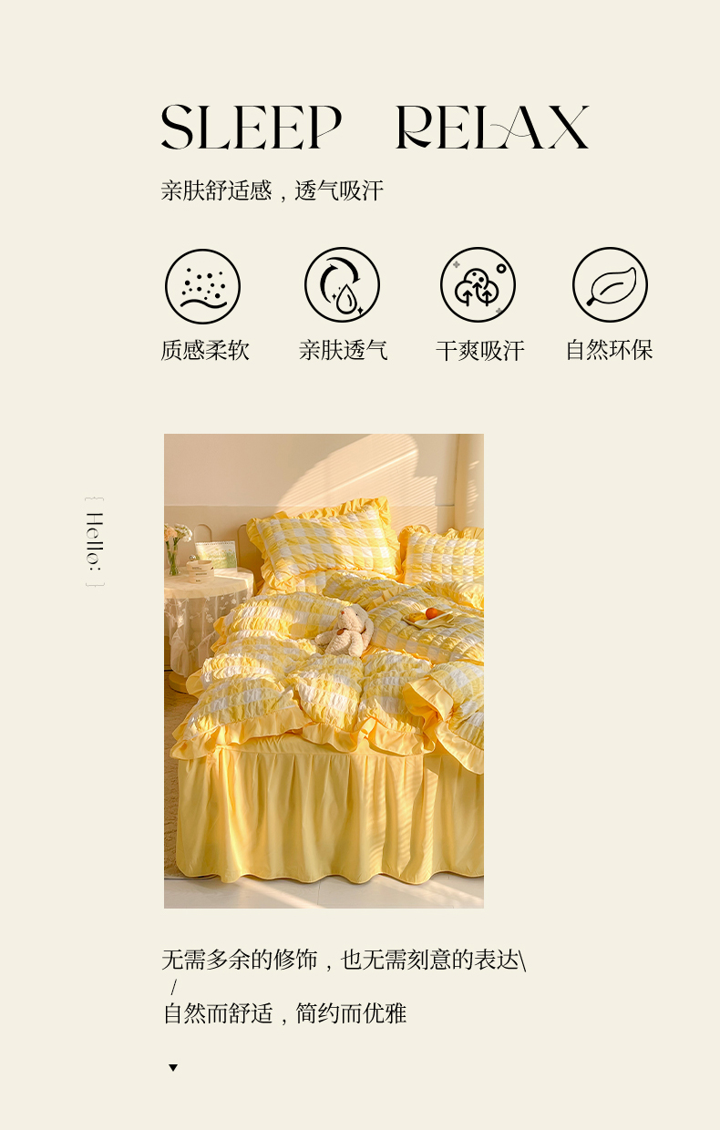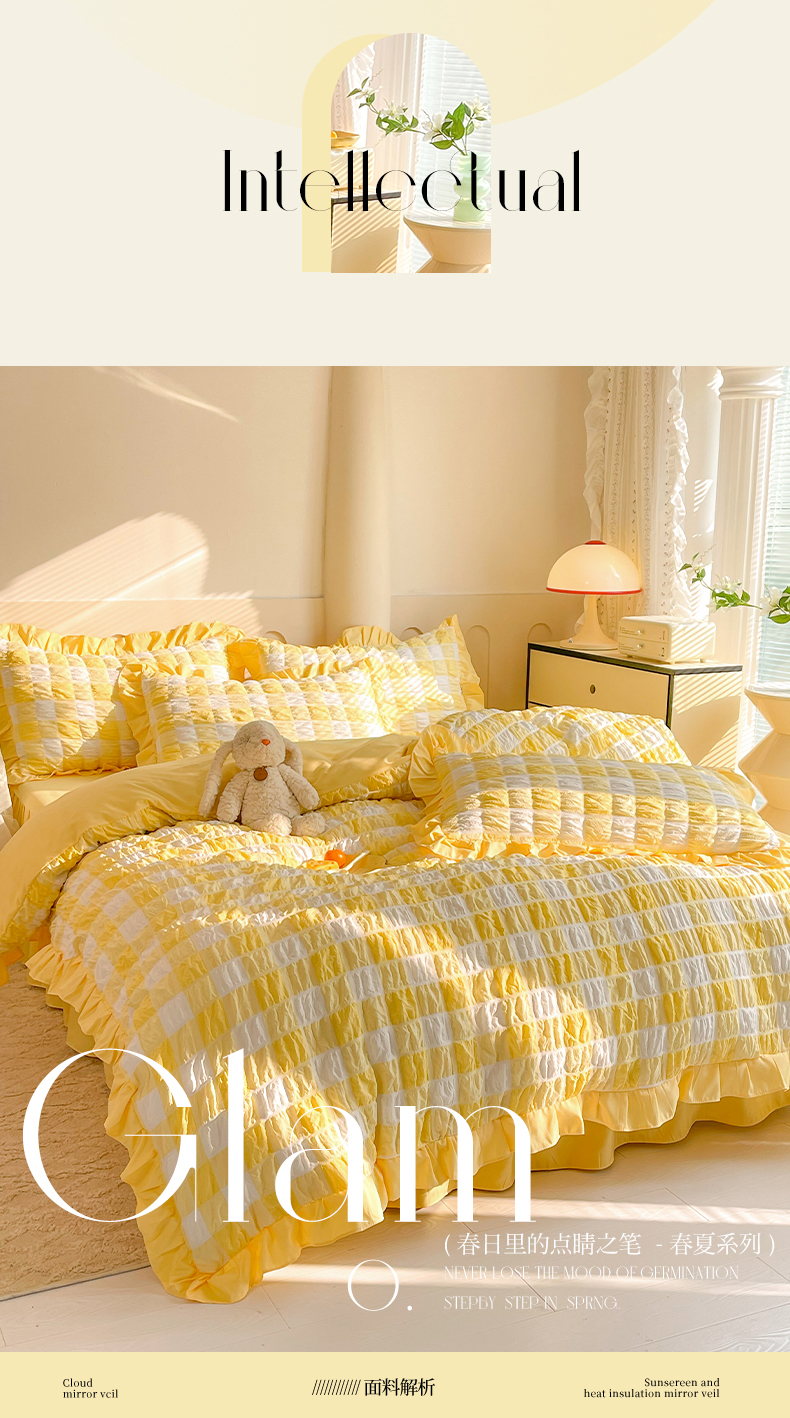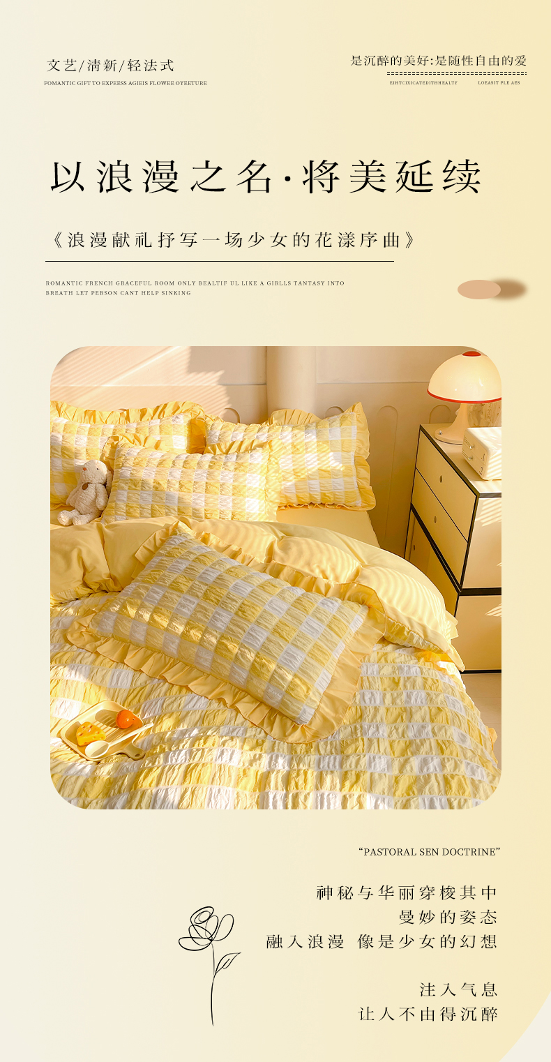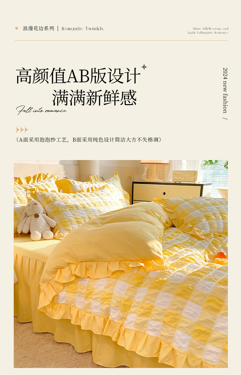 商品名称:(总)九诺 2024春夏新款泡泡纱花边彩虹泡芙系列四件套
