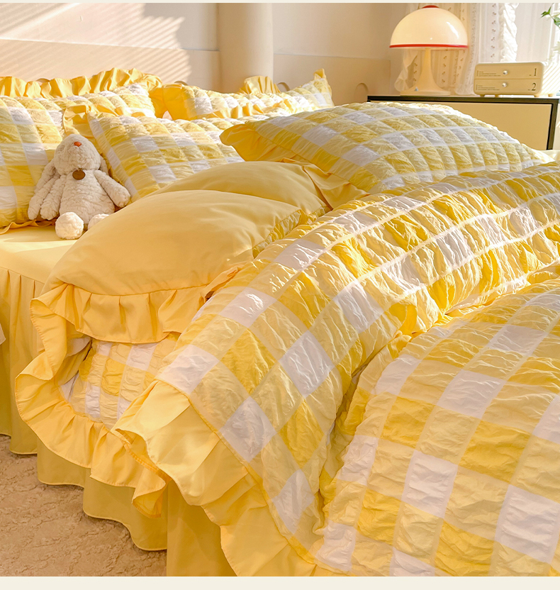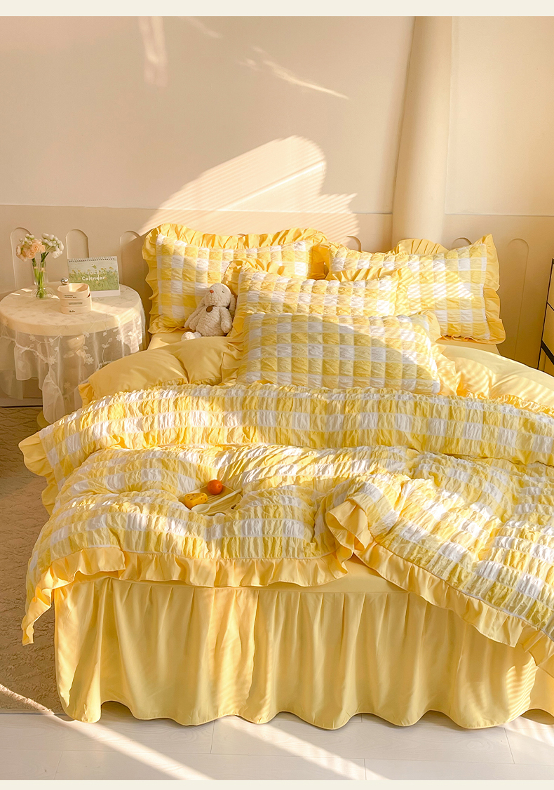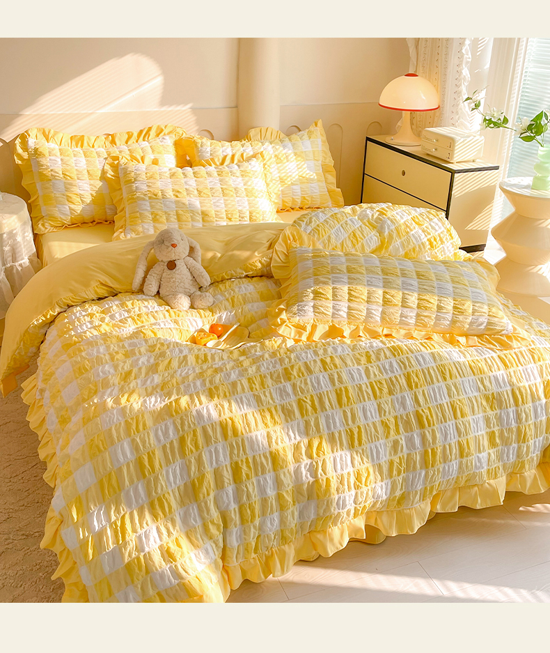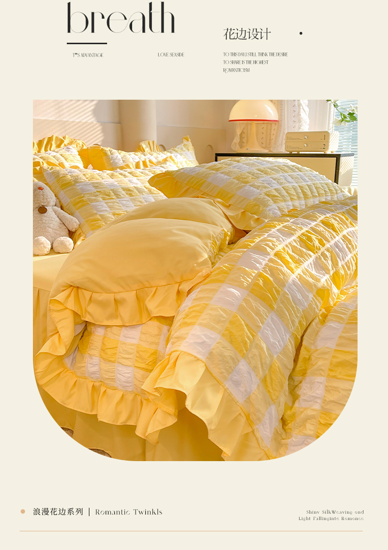 (总)九诺 2024春夏新款泡泡纱花边彩虹泡芙系列四件套