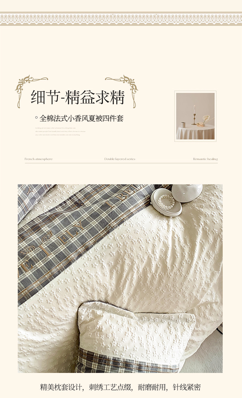 • 91家纺网 家纺一手货源 找家纺 换种生活 2024新款法式小香风全棉夏被四件套 麦田