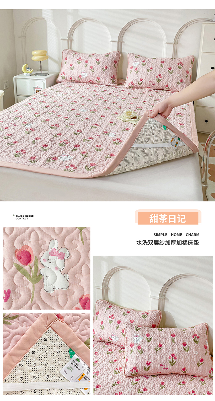 商品名称:纽缦家纺 水洗双层纱加厚加棉床垫 甜茶日记
